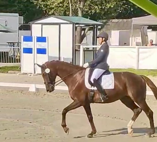 **Verkaufsanzeige: Wunderschöne Hannoveraner Stute** Zum Verkauf steht eine talentierte Hannoveraner Stute, geboren im Jahr 2016. Sie präsentiert sich in einem eleganten Dunkelfuchs-Fell und hat ein Stockmaß von 170 cm. Diese Stute ist besonders für den Dressursport geeignet und zeigt vielversprechende Anlagen. Sie verfügt über eine harmonische Bewegung und ein ausgeglichenes Temperament, was sie zu einer idealen Partnerin für ambitionierte Reiter macht. Sie ist brav im Umgang, gut erzogen und hat bereits erste Erfahrungen im Training gesammelt. Ihre freundliche Art und ihr Lernwille machen sie zu einer Freude im täglichen Umgang. Bei Interesse oder weiteren Fragen stehe ich gerne zur Verfügung. Besuchen Sie uns und überzeugen Sie sich selbst von dieser tollen Stute!