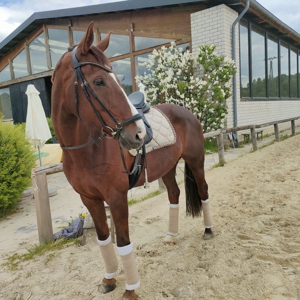 **Annuncio di vendita: Meravigliosa cavalla Hannoverana** In vendita c'è una talentuosa cavalla Hannoverana, nata nel 2016. Si presenta con un elegante manto baio scuro e ha un'altezza al garrese di 170 cm. Questa cavalla è particolarmente adatta per il dressage e mostra predisposizioni promettenti. Possiede un movimento armonioso e un temperamento equilibrato, il che la rende un partner ideale per cavalieri ambiziosi. È docile nel maneggio, ben educata e ha già accumulato le prime esperienze nell'addestramento. Il suo carattere amichevole e la sua voglia di imparare la rendono una gioia nel quotidiano. Per ulteriori informazioni o domande, sono a disposizione. Venite a trovarci e convincetevi di persona di questa fantastica cavalla!