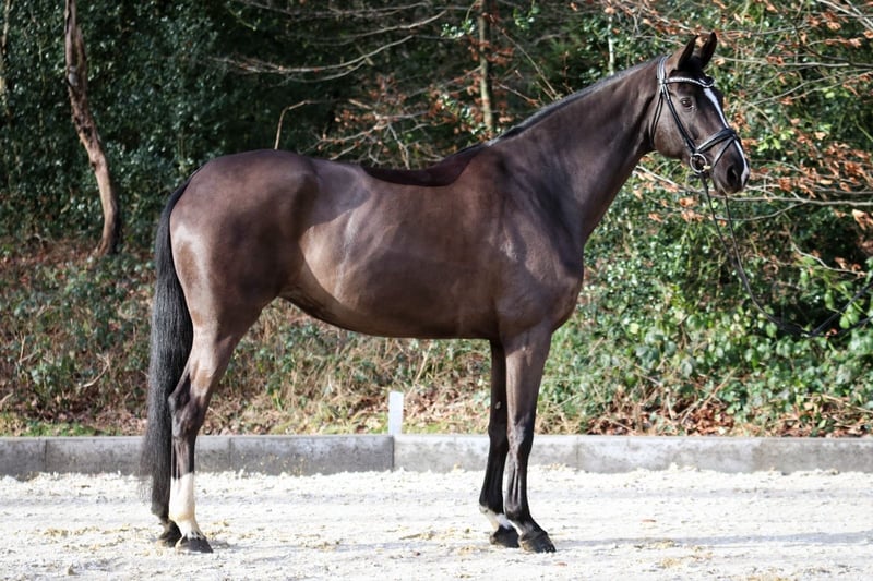Elegant Hanoverian mare for sale – perfect for dressage! This beautiful dark mare, born in 2017, is available for purchase. Standing at 16.1 hh, she impresses with her striking appearance and harmonious conformation. She is ideally suited for dressage and already shows great talent and willingness to learn. The mare is friendly, people-oriented, and easy to handle, making her a pleasant partner. Please feel free to contact me for more information or to arrange a viewing. If you haven't found the right horse yet, don't hesitate to get in touch. We have additional horses that are not yet listed online and are available for sale.