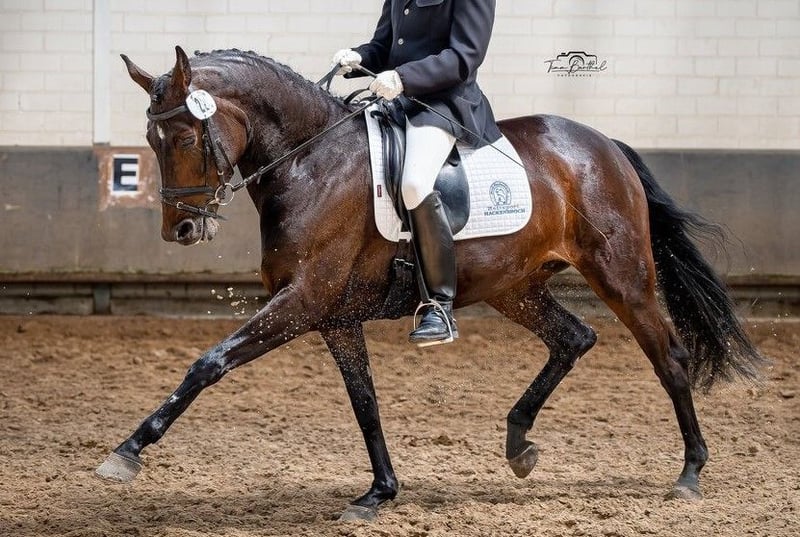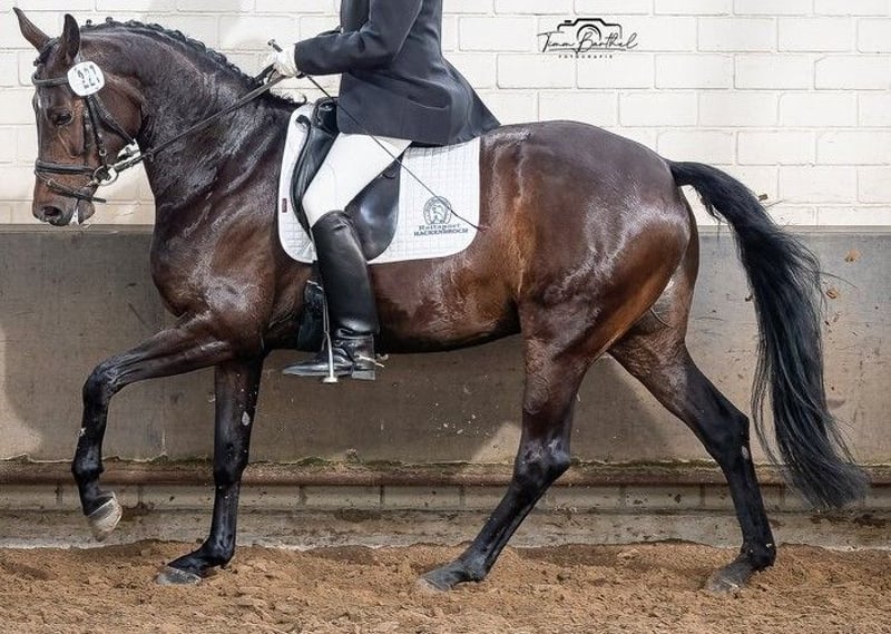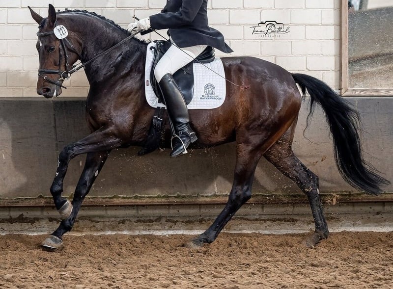 Hannoveraner Stute – Vielseitiges Dressurpferd mit viel Potenzial Zum Verkauf steht eine elegante und talentierte Hannoveraner Stute, geboren im Jahr 2017. Mit ihrem Stockmaß von 172 cm präsentiert sie sich als harmonisches Pferd, das sowohl in der Dressur als auch in der täglichen Arbeit überzeugt. Diese braune Stute verfügt über eine solide Grundausbildung im Dressurviereck und zeigt bereits viel Versammlungsfähigkeit sowie eine gute Grundqualität. Sie ist gut geritten, aufmerksam und stets freundlich im Umgang. Durch ihre ausgeglichene Art ist sie sowohl für ambitionierte Reiterinnen und Reiter als auch für jugendliche Reiter geeignet, die ein zuverlässiges Dressurpferd suchen. Direkt aus Züchterhand . Ihr edles Erscheinungsbild, gepaart mit ihrem angenehmen Charakter und ihrer Bereitschaft, Neues zu lernen, machen sie zu einem echten Juwel im Dressursport. Sie ist gesund, regelmäßig entwurmt und befindet sich in einem gepflegten Zustand. Wenn Sie auf der Suche nach einem vielversprechenden Dressurpferd mit Potenzial für den gehobenen Turniersport sind, könnte diese Hannoveraner Stute genau die Richtige für Sie sein. Für weitere Informationen und einen persönlichen Eindruck stehe ich Ihnen gerne zur Verfügung. 2 x. 3. Pl . Dr. Pferde A 1 x 1. Pl. Dr. Pferde A mit , 8,2 2 mal in Folge Dr. Pferde L gewonnen 1 x 2. Pl. und 1 x 4. Platz in Dr. Pferde M 1 x 5 Pl. in M x 1 x 6 Pl in Mxx Nur dosiert vorgestellt auf dem Weg zur Klasse S , Piruetten , Traversalen , Serienwechsel teilweise schon recht sicher und bergauf Video nur auf Anfrage über Whats App
