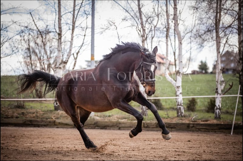 **Anuncio de venta: Hermosa yegua Hannoveriana en venta** Se vende impresionante yegua hannoveriana nacida en 2017. Esta elegante yegua negra y baya impresiona por su noble aspecto. Con una altura de 175 cm, es un verdadero punto de atracción en todas las competiciones de doma. Esta yegua es excelentemente adecuada para el deporte de doma y muestra un gran talento y voluntad de aprender. Tiene una sólida formación básica y está lista para seguir desarrollándose. Su temperamento equilibrado y sus ganas de trabajar la convierten en una compañera ideal tanto para aficionados ambiciosos como para profesionales. Emilia fue introducida suavemente en el trabajo a la edad de 3/5 años (trabajo en el suelo, trabajo a la cuerda). A la edad de 5 años fue domada suavemente y durante un tiempo sólo salió al campo. A los 6 años tuvo un potro y la dejaron sola durante un tiempo (estirón). (El año pasado se la animó más y tiene muy buena actitud para el trabajo. Estoy muy orgullosa de su evolución. Tiene la cabeza despejada, es dulce y se comporta muy bien. No causa ningún problema al herrador. Odio tener que separarme de ella porque es mi yegua favorita, pero también quiero tomar precauciones ahora por motivos de salud. Puedo enviar videos actuales a través de WhatsApp si está interesado. St.Emilia tiene un hermano completo con licencia. (San Patricio) Si está interesado o desea más información, no dude en ponerse en contacto con nosotros.