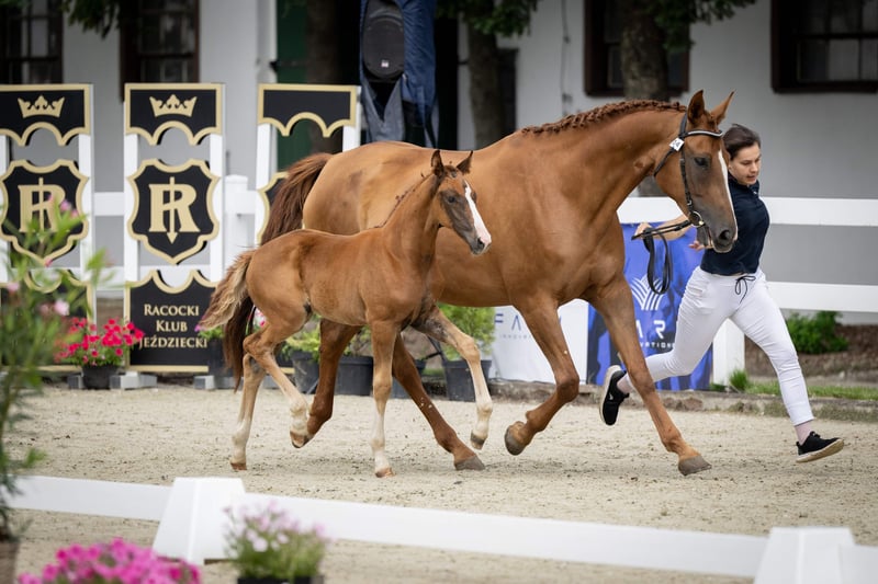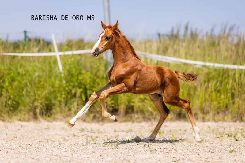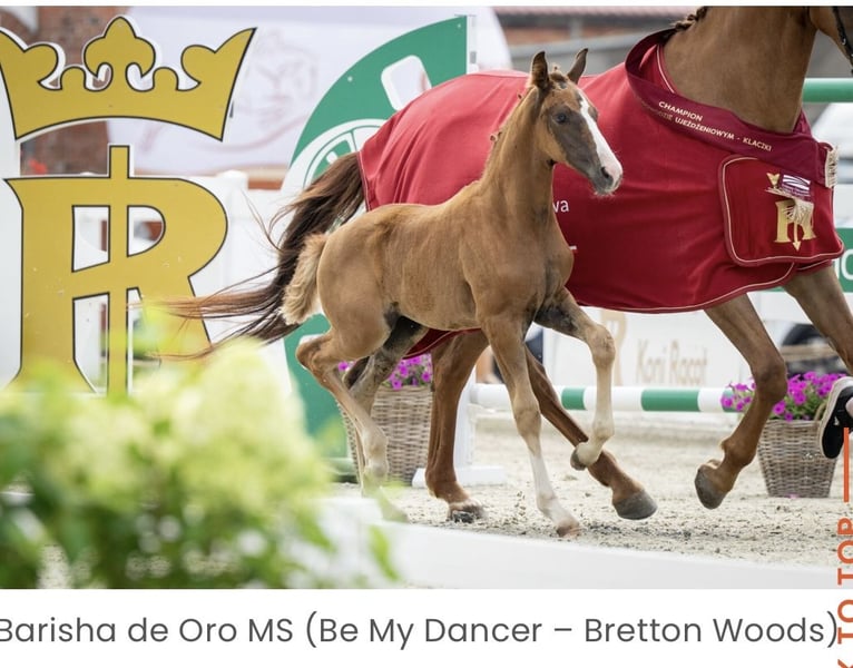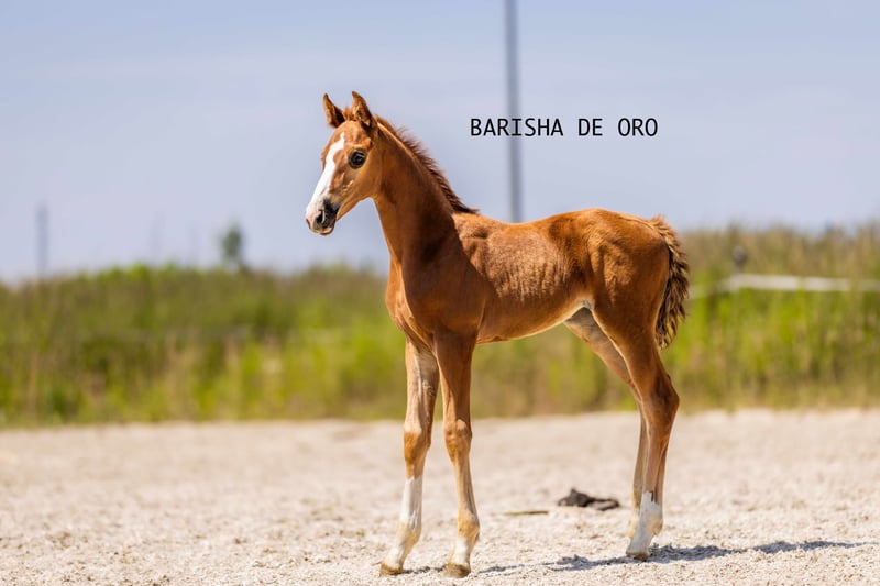 Outstanding Hanoverian Dressage Filly – Barisha de Oro MS ✨ (Be My Dancer / Bretton Woods / Samarant) 🏆 Champion of the Racot Foal Show 2025 – praised by the judges for her movements, rhythm, balance, elasticity, and excellent hind leg. Great trot and uphill canter. Born 2025 – A filly of rare beauty, modern type, and spectacular movement + top dressage pedigree, high level sport prospect.. 🌟 Pedigree highlights: Sire: Be My Dancer (Benicio × Vivaldi) – elite dressage stallion with top-class bloodlines, outstanding performance test scores, and proven sport record. Dam line: Alessia RF (Bretton Woods × Samarant / Rubinstein I) – combining Johnson / De Niro with the influence of Sandro Hit and Rubinstein I. Her pedigree unites 4 generations of world-class dressage producers: Benicio / Belissimo M → elasticity, superb rhythm, and top rideability Vivaldi / Jazz → expression, suppleness, modern movement Johnson / De Niro / Sandro Hit / Rubinstein I → proven performance, power, and rideability Plus legendary sires such as Bolero, Krak C, and Ferragamo further back in her lines. 🌟 Why Barisha de Oro MS? A future star for the highest levels of dressage: she combines beauty, movement, temperament, strength, and bloodlines in one extraordinary package. Athletic, strong, and expressive, yet people-oriented, curious, and brave. Imprinted, raised in pastures with peers, ensuring correct development and socialization. 📍 Available November 2025, directly from breeder