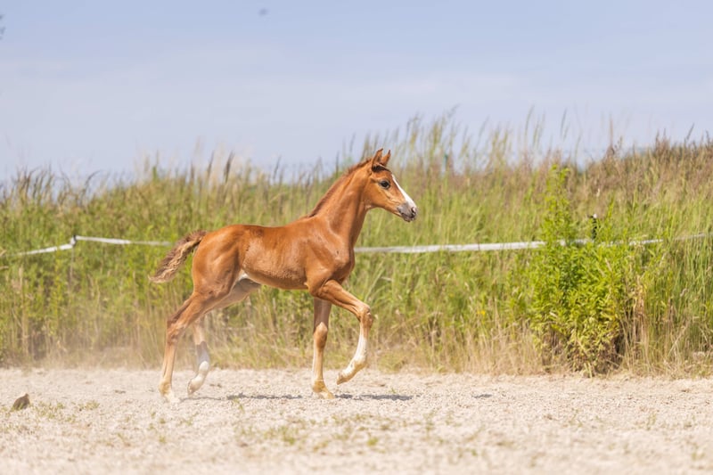 Outstanding Hanoverian Dressage Filly – Barisha de Oro MS ✨ (Be My Dancer / Bretton Woods / Samarant) Born 2025 – A filly of rare beauty, modern type, and spectacular movement + top dressage pedigree. 🏆 Champion of the Racot Foal Show 2025 – praised by the judges for her movements, rhythm, balance, elasticity, and excellent hind leg. Great trot and uphill canter. 🌟 Pedigree highlights: Sire: Be My Dancer (Benicio × Vivaldi) – elite dressage stallion with top-class bloodlines, outstanding performance test scores, and proven sport record. Dam line: Alessia RF (Bretton Woods × Samarant / Rubinstein I) – combining Johnson / De Niro with the influence of Sandro Hit and Rubinstein I. Her pedigree unites 4 generations of world-class dressage producers: Benicio / Belissimo M → elasticity, superb rhythm, and top rideability Vivaldi / Jazz → expression, suppleness, modern movement Johnson / De Niro / Sandro Hit / Rubinstein I → proven performance, power, and rideability Plus legendary sires such as Bolero, Krak C, and Ferragamo further back in her lines. 🌟 Why Barisha de Oro MS? A future star for the highest levels of dressage: she combines beauty, movement, temperament, strength, and bloodlines in one extraordinary package. Athletic, strong, and expressive, friendly & people-oriented, curious, and brave. Imprinted, raised in pastures, ensuring correct development and socialization. 📍 Available November 2025, directly from breeder