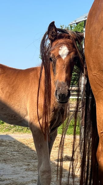 Unsere kleine Prinzessin Bell sucht ihr neues Zuhause. Bell ist nicht nur ein wunderschönes Stutfohlen im roten Mantel, sondern sie weiß auch was es heißt sich elegant zu bewegen. Sie ist mit 3 sehr guten Grundgangarten ausgestattet und hat einen sehr feinen Körperbau. Nicht nur optisch ist sie toll. Bell ist sehr neugierig und liebt es zu kuscheln, ist dabei aber nie aufdringlich. Sie kennt bereits das Fohlen ABC, sie war schon beim Hufschmied, wird regelmäßig entwurmt und läuft am Halfter.