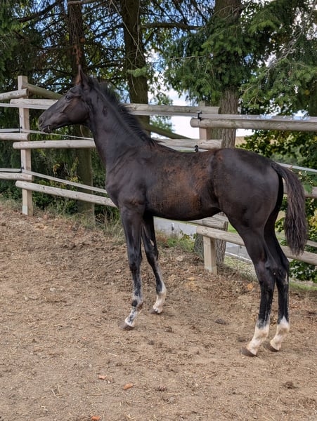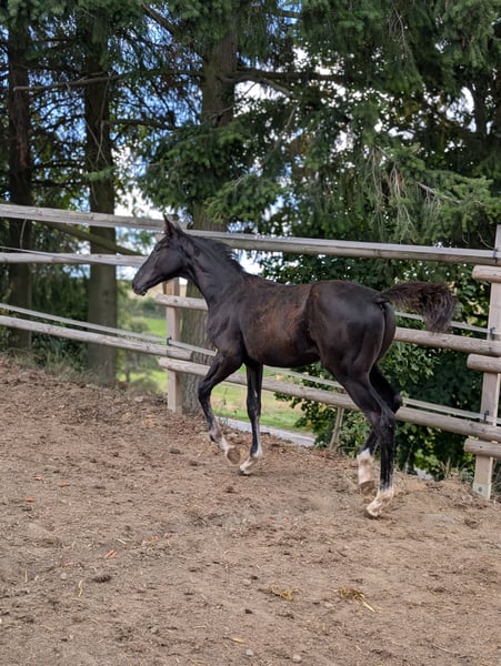 Schwarzer Hannoveraner Rapphengst (geb. 04/2025) Wir präsentieren Ihnen einen außergewöhnlichen Rapphengst, der das Potenzial hat, sowohl im Sport als auch in der Zucht zu glänzen. Dieser Hengst stammt aus der renommierten Zucht von Paul Schockemöhle und vereint beeindruckende Blutlinien: - **Vater:** Lord Europe - **Mutter:** Staatsprämienstute L o u s t I c ( Lauris Crusador x Donnerhall) **Merkmale:** - **Farbe:** Rappe - **Geburtsdatum:** April 2025 - **Fundament:** Absolut korrekt, langbeinig und mit genügend Kraft ausgestattet - **Gangarten:** Herausragende Grundgangarten mit viel Schwung Dieser Hengst verfügt über einen bemerkenswerten Vollblutanteil, der ihm nicht nur Kraft aus der Hinterhand verleiht, sondern auch einen ausgezeichneten Abtritt aus dem Hinterbein. Mit seiner Kombination aus Eleganz, Bewegung und Leistungswillen hat er die besten Chancen, sich in der Sportwelt zu behaupten und als Hengstanwärter zu brillieren. Ob für den anspruchsvollen Sportreiter oder als wertvolle Zuchtressource – dieser Rapphengst ist eine Investition, die sich lohnen wird! Bei Interesse oder für weitere Informationen kontaktieren Sie uns bitte telefonisch
