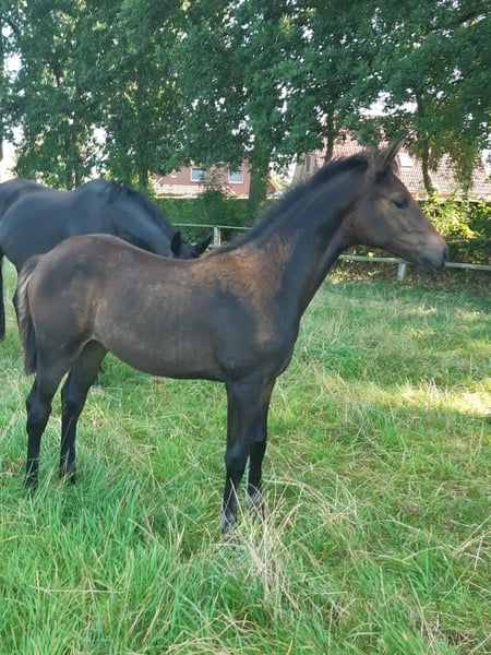 Vielversprechendes Stutfohlen zu verkaufen Geboren im Mai 2025 Dressurbetont Charakterlich astreines, freundliches Fohlen. Sie ist aufgeweckt und zutraulich, kennt Halfter, Hufschmied, Verladen etc. Bewegungsfreudig mit tollen Gängen. Aus dem Stutenstamm Gotenprobe Vater ist der 2020 geborene Hengst Global Hope. Er steht auf dem Klosterhof Medingen und wird dort wie folgt beschrieben: "Mit Global Hope präsentieren wir einen typvollen, antrittsstarken Sohn des Global Player, welcher bei der westfälischen Hauptkörung mit drei erstklassigen Grundgangarten und ausgezeichnetem Interieur brillieren konnte." 2023 wurde Global Hope unter Jacob Schenk zuerst Hannoveranerchampion und im September herausragender Bundeschampion bei den 3-jährigen Hengsten. Er erhielt für Trab und Rittigkeit jeweils die Höchstnote 10, für Schritt und Galopp eine 9,5 sowie eine 8,5 für das Exterieur. Die Mutter ist eine Lebensversicherung unterm Sattel und wird nur aufgrund der privaten Situation der Besitzer nicht im Sport geritten. Mutter uns Großmutter sind Staatsprämienstuten. Der Muttervater ist Libertad, Sieger der Hengstleistungsprüfung, 4-jährig Bundeschampion in Lindenberg. Abzugeben von Privat, im Auftrag inseriert. Das Titelbild ist vom Sommer, das zweite aktuell. Kontakt bitte über mich per E-Mail / Nachricht, ich vermittle dann zum Verkäufer.
