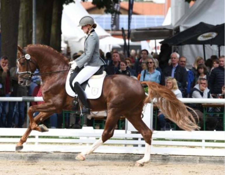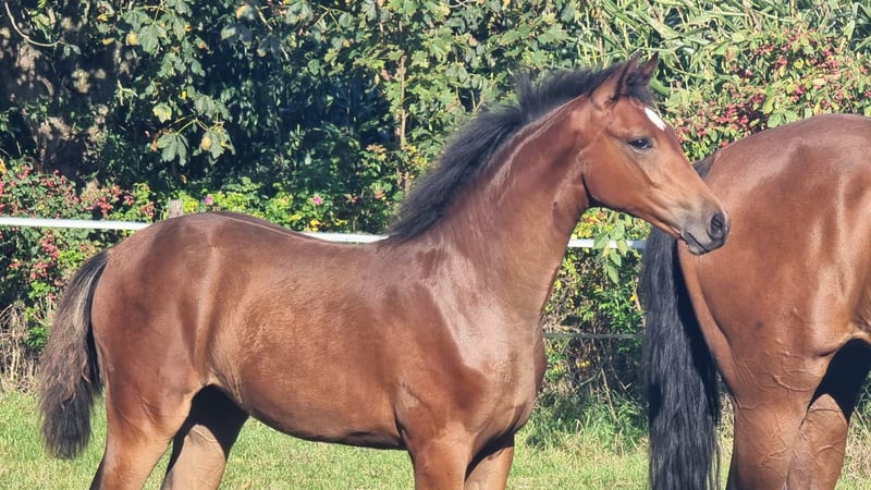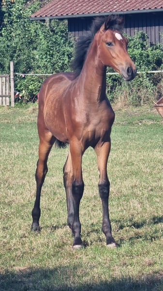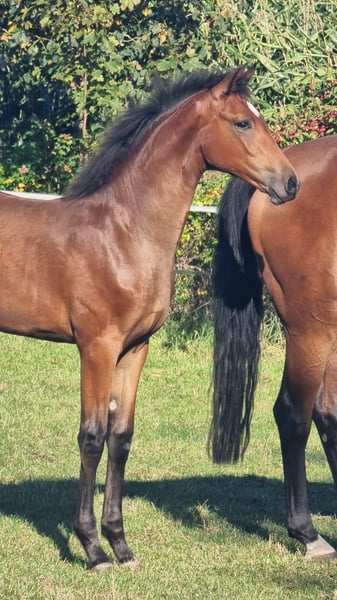 Hallo, wir bieten ein sehr korrektes, langbeiniges und kopfklares Stutfohlen aus April 2025 an. Sie besticht mit ihrem sehr harmonischen Bewegungsabläufen. Dressurgezogen. Sie kennt Hunde, Katzen, Kinder & Maschinen. Das Fohlen ist gesund, regelmäßig geimpft und entwurmt. Bei weiteren Fragen / Video- Bildmaterial melden Sie sich gern ! Bild 6: Vater Vidar Bild 7: Muttervater Fürst Belissaro Telefonisch erreichbar unter 0170/1655297