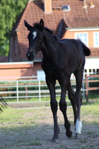 **Verkaufsanzeige: Hannoveraner Stute** Zum Verkauf steht eine vielversprechende Hannoveraner Stute, geboren im Jahr 2025. Diese elegante Rappstute überzeugt nicht nur durch ihre ansprechende Optik, sondern auch durch ihr Potenzial nicht nur im Dressursport. Sie ist freundlich und unkompliziert im Umgang, zeigt sich selbstbewusst und bring eine gesunde Portion Neugier mit. Sie kennt das Fohlen ABC.