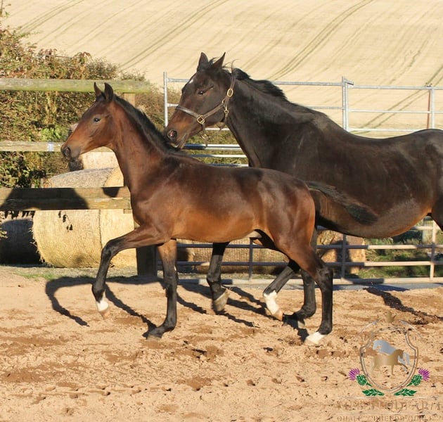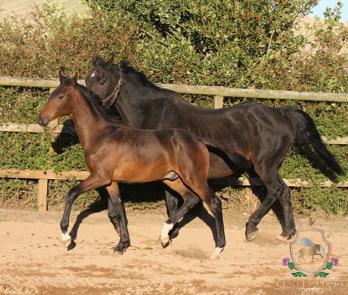 His sire is the Fully Approved Hanoverian stallion, DON AQUI, who was licensed at the Main Hanoverian Stallion Licensing in Verden in October 2000. He passed his 30 day test in Zweibrücken scoring two 9s for his jumping. In 2002 he was very successful in Material/Young Dressage Horse Classes, along with being placed in the Young Showjumping Horse Classes. He then went on to start his eventing career under Jan Büsch by qualifying for the Bundeschampionate in the 5 Year Old Eventing Championship. He qualified for the finals where he was placed 10th!! In the official Hanoverian magazine "DER HANNOVERANER" is stated: "Scene applause und enthusiastic whistling received for Don Aqui v. Don Bosco/Gardeulan (Z.: H. Heineking, Raddestorf) with Jan Büsch in the final. But the judges assessed the round differently. The black proved a consistently good manner and leg technique in front at the jump and showed an energetic canter." DON AQUI has sired numerous sport horses across all three disciplines showing how versatile his stock are and given his limited breedings, also shows what a great disposition he has for producing top quality sport horses. You can find out more here on his own web page- https://www.mfsstudfarm.com/mfs-don-aqui.html Dam of this fabulous colt is the KWPN bred mare WINDEKIND. This exceptional mare has been a proven breeding mare here at the Studfarm for several years. Continually producing Premium and Elite Premium awarded foals by top studbooks of the KWPN and the Oldenburg Verband. She is dam to several competition horses, MFS HUGO BOSS v Belstaff, MFS VOGUE v Valderde, the 1.30m showjumping gelding MFS CASINO ROYAL and MFS NEVERLAND. MFS NEVERLAND was in the top three placed 6 year olds at the British Dressage National Championships in 2024. In 2025 he once again qualified for the Finals of the 7 Year Old Championship, where he was placed 6th overall under his new rider, the Irish Olympic rider, Abi Lyle. The new partnership are now contesting Advanced Medium level dressage. Windekind is by the top sire, SIR SINCLAIR out of a FERRO mare. Sir Sinclair is one of the most prolific sires of FEI dressage horses worldwide. He was ranked the #1 USEF Dressage Sire for six consecutive years, 2015-2020, and has been in the top five ever since. He was awarded the prestigious Keur predicate by the KWPN for his excellence as a sire. He has sired numerous Grand Prix horses, including Dee Clair, Caymus, Cantata, Con Brio SDF, Zuperman, William, Air Marshall, Warina, Westerstorm and Zania. He also has dozens of sons and daughters competing at the FEI level around the world. He is the sire of one Approved stallion and two licensed sons, as well as numerous Sport, Preferent, Elite, Keur and Star offspring. Other impressive titles earned by Sir’s offspring include first place in CDI3* Grand Prix classes, numerous USDF Horse of the Year and USDF All Breeds Horse of the Year Awards at FEI level, GAIG/USDF Regional Championships, KWPN-NA North American Championships, and so much more. This fabulous dark brown colt is very reasonably priced due to the fact we expect him to mature to around 16.1hh. He is so much personality, three correct gaits and with his bloodlines. He will make a fantastic sports horse in the right hands and we know he will excel in any discipline. https://www.mfsstudfarm.com/mfsstudfarmforsale.html