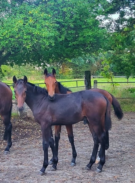 Prachtvol en correct veulenkalf met uitstekende afstamming en sportieve potentie. Vader: Diacontinus - Diarado x Contendro I x Argentinus, met een hoge erfelijkheid voor springtalent. Moeder: Akira B 3 - dochter van Arezzo VDL, zelf meerdere keren M-springwinnaar en hoog S-geplaatst. Zuchtvereniging Hannover. Het veulen overtuigt met een duidelijk type, een correct fundament en krachtige bewegingen. De sportgecertificeerde moederlijn met Chin Chin en Heartbreaker maakt hem zeer interessant voor fokkerij en sport. Hij toont zich zeer open, leergierig en mensgericht – een echt talent met karakter en charme. Locatie: Bad Bentheim ☎️ Contact: 015223111967 of per e-mail Prijs: €7.500 VHB