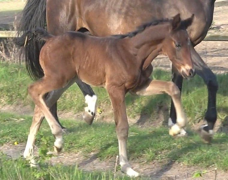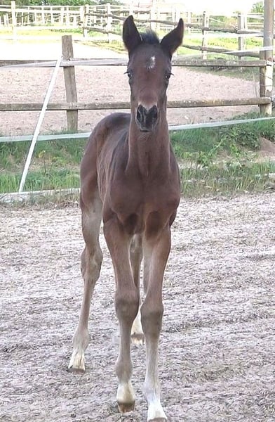 Unser bildschönes, sehr schwungvolles und bewegungsstarkes Hengsfohlen aus unserer H.Pr.St. Desideria von Desiderio x Weltmeyer lässt die Herzen höher schlagen. Er ist Bruder zum Siegerfohlen 2021 der Fohlenschau des Klosterhof Medingen und zu mehreren Auktionsfohlen. Zwei Brüder sind direkt platziert und siegreich in Reitpferdeprüfungen. Aus dem sehr rittigen direkten Stutenstamm sind schon zahlreiche Auktionspferde /-fohlen, Staatsprämienstuten und gekörte Hengste hervorgegangen. Herzlich sind Sie auch eingeladen den kleinen Mann und uns persönlich kennenzulernen. Wir freuen uns schon au Ihren Besuch.