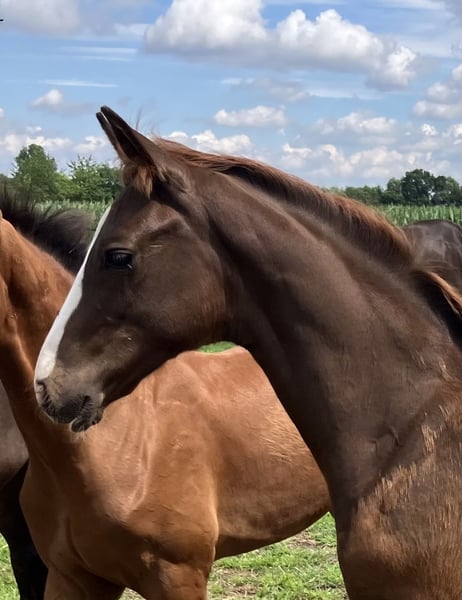 Dieser Jährling verfügt über 3 überdurchschnittliche GGA. Er steht auf einem stabilen, korrekten Fundament und zeigt eine starke, geschlossene Oberlinie. Er entstammt der berühmten Stutenlinie der Neastate, aus der schon unzählige Sportpferde, gekörte Hengste und Prämienstuten hervorgegangen sind. Ein 3/4Bruder(Valdiviani) befindet sich in Hengstaufzucht, eine Halbschwester(Escamillo) ist in Jungpferdeprüfungen erfolgreich. Ein Vollbruder der Mutter war 6j. schon M hochplatziert, inzwischen S gestartet, eine weitere Vollschwester war vor dem Zuchteinsatz in Springprüfungen L hocherfolgreich, M gestartet. Der Vater Vjento hat eine überragende Prüfung abgelegt und war schon mehrfach siegreich in Dressurpferde A