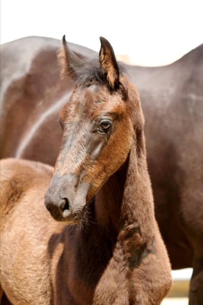 Impressive black stallion from the premiere crop of Leclerc. Stable and correct in his foundation. With his powerful, springy movements, he immediately captivates. This is also genetically predetermined: Sire Leclerc is the son of the runner-up of the Nürnberger Burgpokal 2023, Lord Europe, and thus the grandson of the Glamourdale sire, Lord Leatherdale. Leclerc's dam, the St. Pr. and El. St. Weihronce, is also the mother of Viva Gold, who recently made headlines under Isabell Werth. His grandmother is none other than the exceptional mare Weihegold, who enjoys a unique global status in terms of both athletic and breeding performance. She was the Oldenburg champion mare in 2008, a bronze medalist at the Bundeschampionat in 2009, a finalist at the Young Horse World Championships in 2010, the winner of the Nürnberger Burgpokal in 2013, and the winner of the Louisdor Prize Final in 2014. She was European champion, world champion, Olympic champion, three-time World Cup winner, and of course, the number one in the world rankings. In 2022, at the age of 17, she was sportingly retired in excellent health and full of enthusiasm as the third place finisher in the World Cup final in Leipzig. Dam Emma by Earl - Alabaster impresses with excellent character and rideability traits. She has already produced several promising young horses in the sport. Sire Earl, bred for jumping, was himself successful up to the advanced level in the dressage arena. Great-grandfather Alabaster, a true nobleman, also produced a number of internationally successful dressage horses. Video available upon request. Offered on behalf of the breeder. A place for raising can be provided.