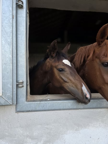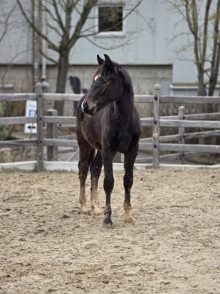 Yearling stallion by Duplexx x Escudo x Raphael, born February 2025, Hanoverian, dark bay, estimated final height approximately 16.1 hh. Ideal for anyone seeking a promising young prospect! A people-oriented, intelligent, and well-behaved yearling looking for a new home. Correct conformation, very expressive, sound, well-mannered, regularly vaccinated and dewormed. Three good gaits, stands on a healthy and stable foundation. Mother is a Hanoverian mare, trained in show jumping up to L-level, currently 22 years old, fit and healthy. Location: 97292 Price: €7,500 negotiable