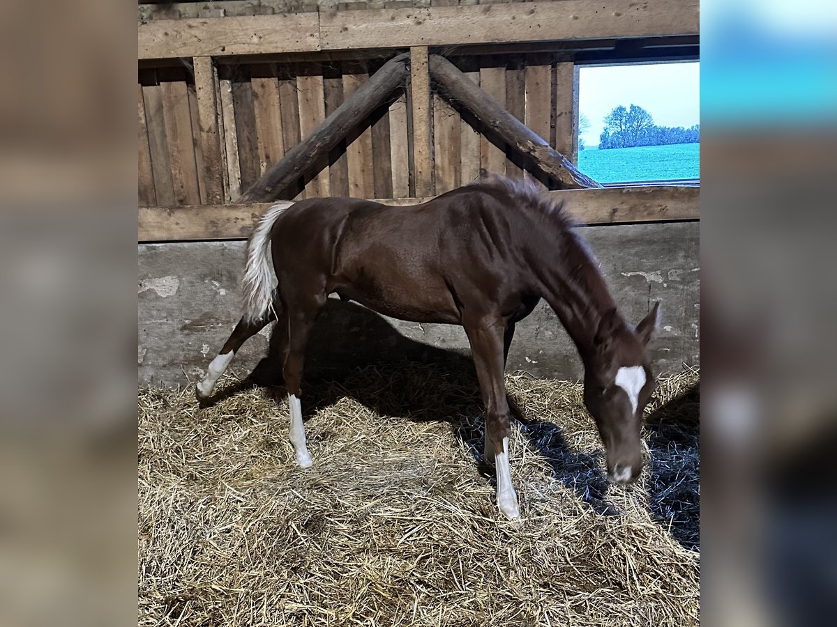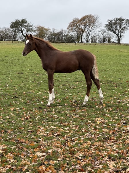Dieses außergewöhnliche Dunkelfuchs begeistert mit seinem eleganten Auftreten, seiner klaren Typausprägung und seinem harmonischen, modernen Exterieur. Mit vier markanten weißen Fesseln und einer natürlichen Ausstrahlung präsentiert er sich als echter Blickfang – ein Youngster, der jetzt schon beweist, wie viel Qualität in ihm steckt. Erstklassige Abstammung – Leistungsblut pur : Seine Abstammung lässt keine Wünsche offen: Der Vater ist der hochbewährte Floriscount, ein Vererber mit internationaler Anerkennung für Rittigkeit, Mechanik und Sporterfolg. Als Muttervater fungiert der legendäre "Lauries Crusador xx", einer der bedeutendsten Veredler der modernen Warmblutzucht mit enormer Bedeutung für Charakter, Elastizität und sportliche Veranlagung. Die Mutter dieses Hengstfohlens ist Vollschwester zur Stute *"Lola**" die wiederum die Mutter der sportlich hoch erfolgreichen "Florine Old" ist. Diese enge Verwandtschaft zu bewährten Turnierpferden unterstreicht das sportliche Potenzial des Fohlens – bestes Leistungsblut durchgehend abgesichert. Einziges Hengstfohlen des Jahrgangs – eine besondere Chance Da er unser einziges Hengstfohlen in diesem Jahr ist, haben wir beschlossen, ihn in fördernde Hände abzugeben. Sein Talent, seine Qualität und sein Bewegungspotenzial sollen die Chance bekommen, sich unter dem richtigen Reiter oder in professioneller Aufzucht weiterzuentwickeln. Ein Fohlen mit Zukunft für Zucht, Sport und Jungpferdeausbildung Dieses Hengstfohlen vereint alles, was man sich für Dressur und Zucht wünscht: Typ, Charme, eine exzellente Leistungsfamilie und ein Exterieur, das für höchste Ansprüche steht. "Ein Nachwuchsathlet mit Perspektive", der sowohl für den ambitionierten Sport als auch eine spätere Hengstlaufbahn interessant ist. Besichtigung jederzeit möglich Wir verfügen derzeit über keine Videoaufnahmen, aber Interessenten sind herzlich eingeladen, uns auf unserem schönen Hof zu besuchen und sich ein persönliches Bild von diesem besonderen Fohlen zu machen. Wir sind natürlich Verhandlungsbereit ;-) Bitte Kontakt auf WhatsApp : 0045 42282812