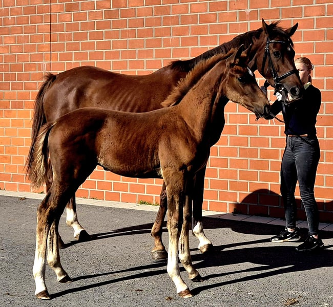 *** Boniro*** For Sale! Zum Verkauf steht ein vielversprechender Hannoveraner Dunkelfuchdhengst, geboren am 20.06.2025. Dieser elegante Dunkelfuchs begeistert nicht nur durch seine auffällige Farbe, sondern auch durch sein außergewöhnliches Potenzial im Dressursport. Wer eine vielversprechende Offerte für den Sport sucht, wird hier definitiv fündig! Bei Interesse oder weiteren Fragen stehe ich Ihnen gerne zur Verfügung. Vereinbaren Sie einen Termin zur Besichtigung und überzeugen Sie sich selbst von diesem tollen Pferd!