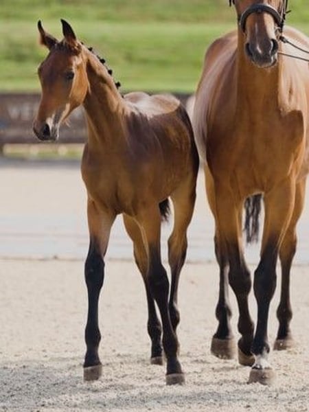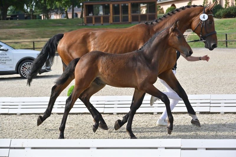 Modern colt – athletic, expressive, and with the conformation of a top modern show jumper. This outstanding foal is among the best of the Bonhomme Foal Championship and received top scores for type (9.0), conformation, and overall impression (each 8.5). He exudes charisma, has a correct build, and a very good, balanced canter. His friendly, alert, and attentive nature is especially noteworthy! Thanks to his gentle temperament and exceptional jumping pedigree, he is well-suited for both ambitious amateurs and professionals. The foal is regularly handled, familiar with basic foal training, and in excellent health. He is regularly trimmed, dewormed, chipped, and has a clean bill of health. Born and raised in loving, attentive private breeding. We look forward to your interest and are happy to show you the foal in person! Feel free to contact us via WhatsApp: +49 176 55323449. His sire, the impressive 1.60 m jumping winner Zinedream, is among the top competitors at major international events with David Will. He has achieved numerous wins and placings in the Global Champions League, World Cup stages, Nations Cups, Grand Prix, and many other international competitions. Zinedream is not only a top athlete but also a first-class breeding stallion – his progeny include high-placed young horses, competition winners, and premium stallions. We are convinced that his outstanding jumping ability, scope, rideability, and caution will also be passed on to this foal. The dam is a direct daughter of the valuable Stolzenberg, Hannoveraner Stallion of the Year 2019, who counts over 60 successful offspring in the 1.40 m and higher classes, making him one of Hannover’s most influential jumping sires. Through Graf Top and Gardeulan, she brings proven G-bloodlines and additional world-class genetics into her pedigree. Among her successful relatives in the direct line is Congrato, who has placed in FEI 2* show jumping. The pedigree is based on the highly successful and double-licensed Hannoveraner Stamm Justaza. Hannoveraner mare line Justaza: Licensed stallions: Calayo (by Charming Irco), Dragahn (by Diavolo), Golan (by Gottschalk), Lacatto RK (by Lethago Z, 1.30 m jumping), Lukrativ (by Lukas), Wenckstern (by Weltmeyer, Dressage Grand Prix). Sport horses: A Quite (by Quidam’s Rubin, 1.60 m jumping), Arack (by Absatz, 1.10 m jumping, L*-dressage, 0.90 m eventing), A. Mira Liwe (by Liwe Star, 1.40 m jumping), Benetton 40 (by Blue Hors Bentley, 1.00 m jumping, L*-dressage), Carisma II (by Contendro I, 1.40 m jumping), Catch Me RK (by DSP Cashmoaker, 1.35 m jumping), Congrato (by Contendro I, 1.45 m jumping), Contendro KA (by Contendro I, 1.35 m jumping), Crystel Clear (by Calido I, 1.45 m jumping), Dakar (by Don Bosco, M*-dressage), Debussy (by Dimaggio, PSG/Inter I), Don Giovanni (by Drosselklang II, 1.20 m jumping), Dora Di Louisa (by Der Designer, S-dressage), Dracina (by Drosselklang II, 1.30 m jumping), Espen Escalidog (by Exorbitant xx, L**-dressage), Esquinza (by Ehrentusch, 1.30 m jumping), H4H Ghalliya (by Tango, PSG/Inter I), Hannigan L (by Herzensdieb, PSG/Inter I), Heart To Heart (by Heartbeat, 1.35 m jumping), Huracan (by Blue Hors Hotline, PSG/Inter I), Libero 118 (by Likoto xx, M**-dressage), Locana (by Cola, 1.35 m jumping), Lucy (by Lanthan, 1.10 m jumping, A-dressage), Nurmi 21 (by Novum xx, 1.35 m jumping, L*-dressage), Quintor (by Quintender, 1.35 m jumping), Pramwaldhof’s Bayala (by Barroso, dressage Grand Prix), Severis Jody (by Johnson, PSG/Inter I), Valencia 86 (by Valentino, M*-dressage), Valentina 81 (by Valentino, 1.35 m jumping), Washington 110 (by Walt Disney I, M*-dressage), Weltwirbel (by Weltmeyer, M*-dressage), Wembley (by Weltmeyer, PSG/Inter I), Wild Willy Granly (by De Noir 3, PSG/Inter I), Wolverine 2 (by Weltmeyer, PSG/Inter I).