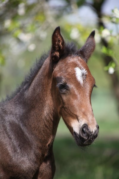 Angeboten wird ein sehr schönes, langbeiniges Hengstfohlen mit brauner Jacke, mit sehr edlem Kopf und kraftvollen Bewegungen. Er hat viel Temperament und weiß mit seinem Charme zu überzeugen.