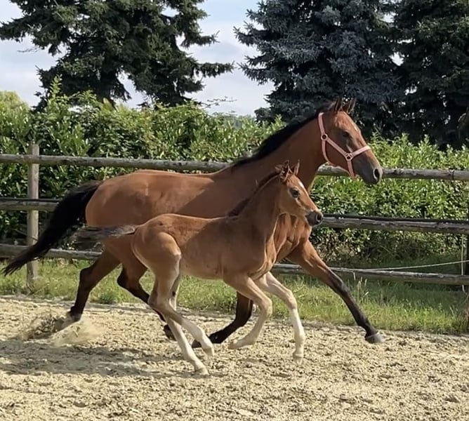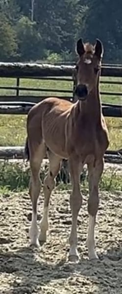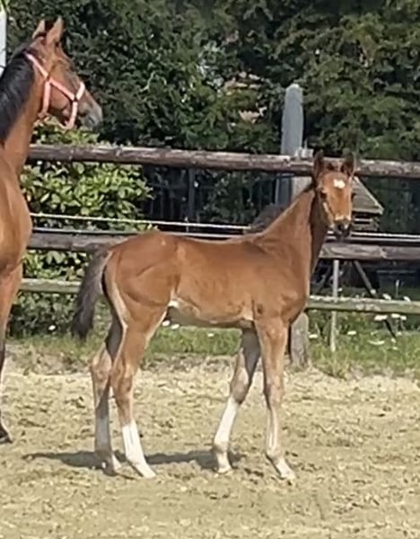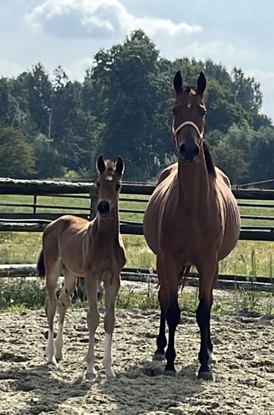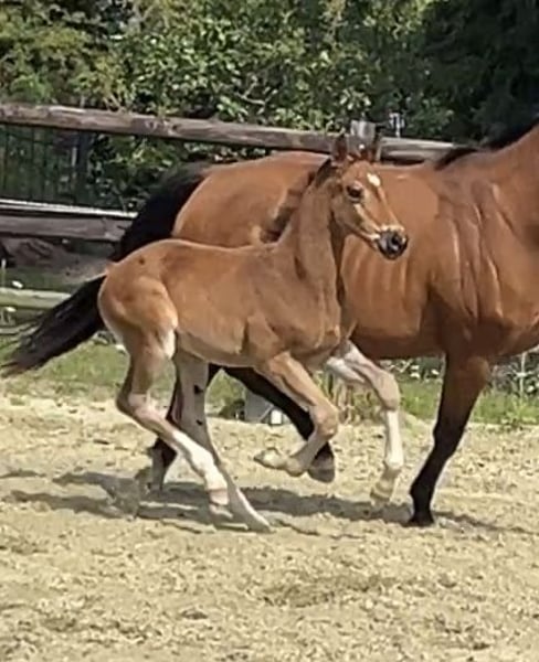 Erst am 08.06.25 geboren weiß er schon sich zu präsentieren. Ein Hengstfohlen von Sarai L x Spökenkieker x Baroncelli möchte in die selben Fußstapfen. Das sollte ihm gelingen.