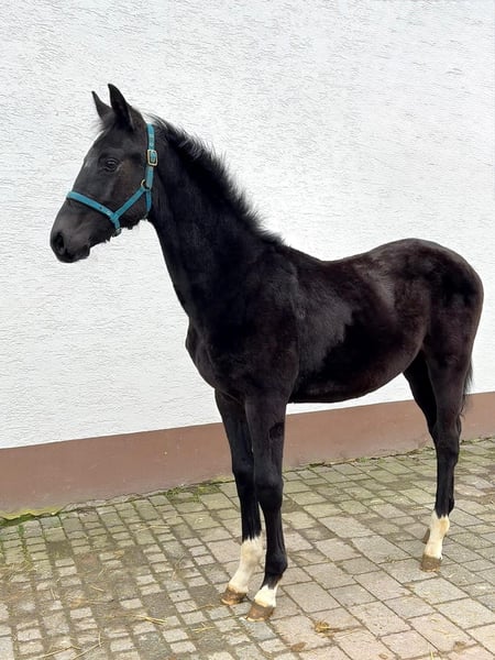 Zum Verkauf steht dieser Anfang Juni 2025 geborene Sohn des Bondolo. Mitten im Wachstum stehend konnte er bereits bei seinen ersten Auftritten überzeugen. Vater Bondolo stellte dieses Jahr seinen ersten Fohlenjahrgang, der auch bei der Nachzuchtbewertung positiv auffiel. Er selbst ist beständig in Reit- und Dressurpferdeprüfungen erfolgreich. Mutter Florine stammt ab vom S-Dressur-Sieger Florenz und Spitzenvererber Ampère. Ihre Mutter Donna Leon brachte den gekörten Vanity Fair.