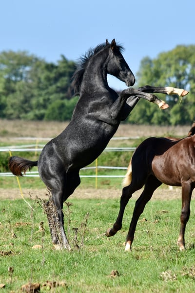🌙 Silvermoon d’Eden🌙 Sky x Dancier x Warkant Mâle Hanovrien gris (base noire) Né le 13 mai 2025 Cherche sa famille 5💫 Je suis archi fan de ce poulain très chic, qui, en plus d’avoir trois très bonnes allures que vous pouvez voir sur cette vidéo 😁 Est super adorable, curieux, proche de l’Homme et serein au quotidien. Ne gardant pas de mâles à l’élevage, il est à la recherche de sa future maison 5⭐️ Qu’il pourra rejoindre au sevrage ! (Si il était une fille, je peux vous assurer qu’il resterait à la maison 😍) Son père, Sky, est par le triple champion du monde Sezuan et une mère par Sir Donnerhall, qu’on ne présente plus. Sky vient de remporter le championnat allemand des 7 ans avec la très belle moyenne de 89,6 pour ses qualités d’allures et de 77,27 pour la technique ! Sky a été nommé étalon premium lors de son approbation au Hanovre, dont il a été le top price à 480 000 euros. Lors des testages, il obtient notamment 9,75 pour sa facilité sous la selle. Sa mère est une jument de 5 ans par Dancier x Warkant. Son demi-frère par Blue Hors Viconte a été top price en ventes aux enchères foals en 2021 et vendu 46 000 euros. Snowy est une adorable jument qui a trois très bonnes allures avec de très bons postérieurs et de la souplesse. Vous pouvez venir le rencontrer à notre élevage, près de Poitiers. N’hésitez pas à me contacter pour plus d’informations ! 10 000 euros HT (negociable avant sevrage)