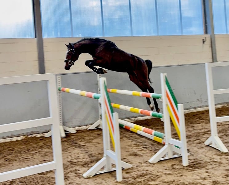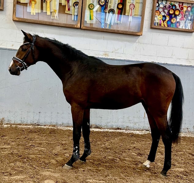 Zum Verkauf steht ein wunderschöner zweijähriger Hengst, mit einem derzeitigen Stockmaß von 1,65m mit der Abstammung Contagio Z - Quintender-Paroli-Domspatz-Agram. Aus der Mutterlinie stammen Top Springer wie Con Juan und New Love 2 (1,50m), Coyote Ugly / Al Ayar und Coolman, alle über 1,45m sowie Call him Top (1,40m). Er ist genau wie seine Mutter sehr nervenstark und menschenbezogen. Der junge Hannoveraner zeichnet sich durch seine charmante, liebevolle und ruhige Art aus. Im Umgang zeigt er sich ausgesprochen brav und lernbereit und gut in der Anlehnung. Sein Galopp ist getragen und auf der richtigen Hand. Er ist ein super Freispringer und sucht einen Reiter der ihn formt und für den Sport ausbildet. Er ist schmiede- und verladefromm. Bodenarbeit mit Trense, Longe und Gurt absolviert er souverän. Countach ist ein Versprechen in die Zukunft, ein tolles Sportpferd mit super Genetik und einem grossartigen Charakter.