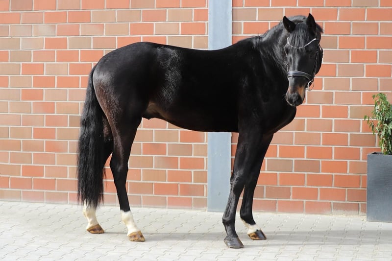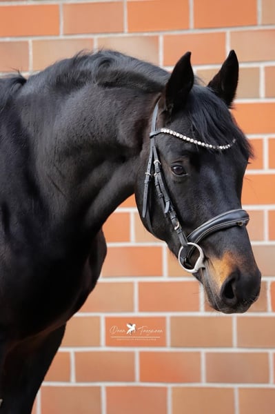 This fine three-year-old stallion is lively, optimally developed, and now ready to be backed. He has three very good, elastic, and ground-covering basic gaits with a lot of expression. Friendly and always pleasant to handle. Estimated final height: 167 cm. Due to his good character and first-class pedigree, he is suitable for ambitious amateurs and professionals. A top-bred young horse with excellent prospects for advanced dressage sport with appropriate training. In excellent health, from the best breeding, in optimal condition. Vaccinated, dewormed, microchipped, regularly presented to the farrier, and good with shoeing and loading. Directly from the breeder. We would be happy to show you this wonderful young horse in person on site! Contact us also via WhatsApp: +49 176 55323449.