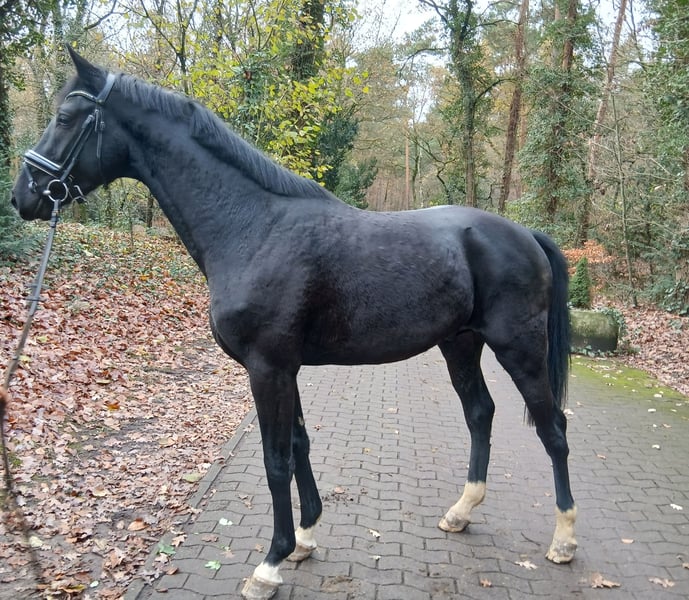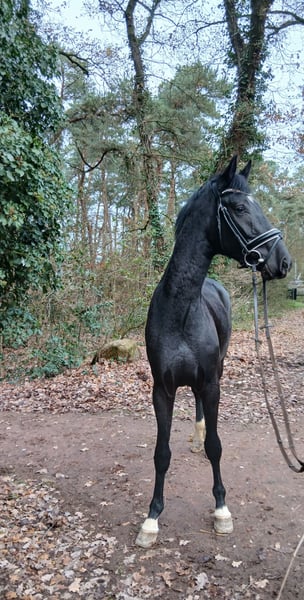 The stallion has three excellent gaits, with a very active hind leg. He comes from a top dam line with many approved stallions and successful sport horses. He is lunged regularly. Currently without shoes. Very well-behaved in handling. A comprehensive veterinary report is available. He was licensed at the main licensing in Verden. Due to an incidental X-ray finding, he is being sold well below his value.