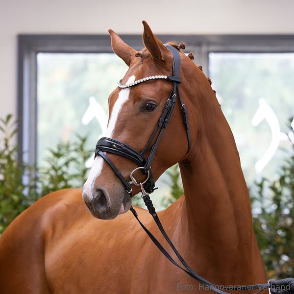 Bei der Hengstvorauswahl gesichtet, präsentiert sich diese zusätzliche Offerte als interessantes Nachwuchspferd. Noch ungeritten, überzeugt er mit großem Potenzial. Eine persönliche Begutachtung ist beim Aussteller möglich; Besichtigungstermine vermitteln wir gerne. Die Abholung erfolgt direkt vor Ort beim Aussteller. Mit interessantem Pedigree und gutem Springvermögen ausgestattet, verweist er auf einen erfolgreichen Mutterstamm mit international bewährten Springpferden bis 1,55 m. 1. Generation Sportpferde Springen: Chacalia M v. Chacfly PS (SPR: 1,30 m mit Helena Schlickum). 2. Generation Sportpferde Springen: Coco Chanel M/Coco Chanel M 3 v. Cristallo II (SPR: 1,55 m mit Luis Sabino Goncalves,Spezialspringpferdeprfg. Kl.M m.2 Uml.Bundeschampionat 5 jährige 2017); Balou Bellini v. Blockbuster I (SPR: 1,30 m mit Dylan Broich). 3. Generation Sportpferde Dressur: Fantaghiro 4 v. Foxtrott (DRE: S mit Bröcker,Vanessa); StPr Lima-Luna/Lima Luna v. Lord Loxley (DRE: M** mit Marcus Hermes); Winn Dixie v. Weinberg (DRE: M** mit Linda Clymans); Fandango-Time/Fandango Time v. For Romadour (DRE: M* mit Bianca Weyrich). Sportpferde Springen: Cordina/Cordina 23 v. Cordino (SPR: 1,45 m mit Lea-Lotte Wiedeking); Armageddon/Armageddon 3 v. Almox Prints J (SPR: 1,40 m mit Raisch,Matthias); Tipptopp v. Tänzer (SPR: 1,30 m mit Mandy Becker); Foxpol v. Foxtrott (SPR: M mit Reininghaus,May). Aufbauprüfungen Dressur: Dark Diamond/Dark Diamond 82 v. Danciano (DRE: L). Aufbauprüfungen Springen: Cara Mia M 3 v. Castellini (SPR: 1,30 m mit Ina Ginters); Chica la Grande RH v. Colestus (SPR: 1,30 m mit Niklas Braun); Carlchen M/Karlchen 141 v. Crusoe (SPR: L); gek. Hengst Al Passal/Alposal v. Almox Prints J (SPR: L,Hoftermin 1998); FLATOW 2 v. Foxtrott (SPR: L). Bes. Prämientöchter: StPr Floraison/Floraison 2 v. Fürst Romancier; StPr Donna Loretta v. Diamond Hit; VbPr Jacquelina v. Jacquare; StPr Timeless V/Timeless 3 v. Tänzer; StPr Cinderella v. Captain. 4. Generation Sportpferde Dressur: Flamenco 47 v. Foxtrott (DRE: S** mit Kasselmann,Bianca); Janosch T v. Jacquare (DRE: S* mit Christoph Kleimeyer); Tarantello v. Tänzer (DRE: S mit Günther,Frank); Mon-Ami v. Maquisard (DRE: S mit Kontoangelos,Sara); Lucienne T v. Lancer II (DRE: M** mit Sarina Gehrmann,SPR: M mit Ehning,Johannes); Snow Patrol 2 v. Sapros (DRE: M* mit Jennifer Staar); Champagne/Chuck Berry 3 v. Circus (DRE: M mit Kuytz,Karen,SPR: M mit Kuytz,Karen). Sportpferde Springen: Diamant T v. Diagonal (SPR: 1,50 m mit Alexander Hufenstuhl,Nationenpreis Springen Junge Reiter -international- 2007); True Love/True Love 8 v. Tänzer (SPR: 1,40 m mit Schreiber,Nicole); Tagena v. Tänzer (SPR: 1,40 m mit Beine,Klaus); Foxdor v. Foxtrott (SPR: S mit Eden,Rafael); Fabienne/FABIENNE 37 v. Foxtrott (SPR: S mit KOENEMUND,RUDOLF); VbPr Welina/Welina 29 v. Warrant (SPR: 1,30 m mit Jana Wernsmann); Liza Minelli 11 v. Liberty (SPR: M mit Karen Kuytz); Leonardo T 2 v. Lancer II (SPR: M mit Steinau,Christopher); Maren 13 v. Maquisard (SPR: M mit Kuwertz,Kevin); Champagne/Chuck Berry 3 v. Circus (DRE: M mit Kuytz,Karen,SPR: M mit Kuytz,Karen); Lucienne T v. Lancer II (DRE: M** mit Sarina Gehrmann,SPR: M mit Ehning,Johannes); ERZBISCHOF v. Ehrenfried (SPR: M mit BOSMANN,BERND). Sportpferde Voltigieren: Turtock v. Tänzer (Voltigieren: S mit Maximilian Götze,Deutsche Meisterschaft Einzelvoltigieren Junioren der Damen 2021,Deutsche Meisterschaft Einzelvoltigieren Junioren der Herren 2019,Deutsche Meisterschaft Einzelvoltigieren Junioren der Herren 2019). Aufbauprüfungen Dressur: Julienne T v. Jacquare (DRE: L); Exotic Girl v. Ex Libris (DRE: L); Fair-Play 10 v. Foxtrott (DRE: L). Aufbauprüfungen Springen: Loutina 3 v. Loutino (SPR: 1,30 m mit Karen Wisser); Caren Mc Loy/Caren Mc Coy v. Circus (SPR: L). Besondere Sportergebnisse: StPr Rembana v. Rembrandt (Championat für Reitpferde m.M. 1992). Bes. Prämientöchter: StPr Carmen/Carmen 178 v. Champus; StPr Lady Bonita/Lady Bonita v. Liberty; StPr Traumtanz/Traumtanz 2 v. Tänzer; StPr Fabiola v. Foxtrott; StPr Parodie v. Polydor. Mutter: La Toya M ZL: 7/7 ZSP: Feldprüfung Reitpferd - Trab 7,00 Galopp 7,50 Schritt 7,00 / Durchschnitt Rittigkeit 0,00 / Durchschnitt Springen 9,00 Turniererfolge: SPF: A 1/3. Großmutter: Pepper Ann ZL: 6/6 Das Pferd ist ein Verdener Auktionspferd und wird am 25.01.2026 online versteigert. Vom 12.01. bis zum 25.01. kann das Pferd jeden Tag beim öffentlichen Training besichtigt und ausprobiert werden. Das Startgebot bei der Versteigerung ist 8.000 Euro.