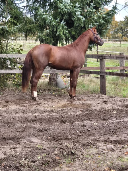 Dieser elegante, kraftvolle Fuchshengst von Vivaldos präsentiert sich mit hervorragender Aufmachung und außergewöhnlicher Bewegungsqualität. Bereits in jungen Jahren zeigt er eine natürliche Balance, einen taktsicheren Ablauf und elastische Bewegungen, die sein großes Potenzial für den Dressursport erkennen lassen. Sein Interieur überzeugt ebenso: Der Hengst ist aufmerksam, lernfreudig und brav im täglichen Umgang. Er zeigt sich stets kooperativ und offen für neue Aufgaben, was ihn zu einem idealen Partner für eine zukünftige Karriere im Sport macht.
