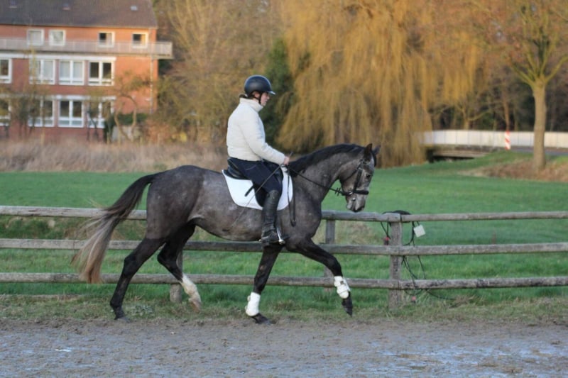 Verkaufe Hannoveraner Hengst – Schimmel, geb. 2022 Zum Verkauf steht ein wunderschöner Hannoveraner Hengst, geboren im Jahr 2022. Der edle Schimmel besticht durch sein elegantes Erscheinungsbild und sein vielversprechendes Potenzial im Dressursport. Der junge Hengst überzeugt durch seine guten Grundgangarten, sein angenehmes Temperament und seine Lernbereitschaft. Ist aber aufgrund seines Alters kein Anfängerpferd, kann auf Wunsch kastriert werden. Bei Interesse oder für weitere Informationen stehe ich Ihnen gerne zur Verfügung. Besichtigung und Proberitte nach Vereinbarung möglich.