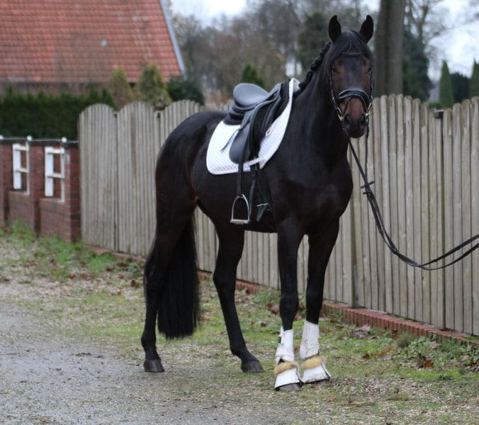 Na zlecenie sprzedajemy tego 4-letniego ogiera od Vaderland, po matce z linii Toto Jr. Ten ogier jest już na lonży i jest obecnie w trakcie jazdy próbnej. Na co dzień wykazuje nieco nieśmiałość, ale zawsze jest posłuszny i zmotywowany. Nie ma żadnych zachowań typowych dla ogierów! Przyciąga swoim dobrym ruchem podstawowym i nienagannym charakterem! W przypadku zainteresowania możemy go umieścić w naszym stadninie i dalej szkolić. Czy wzbudziliśmy Państwa zainteresowanie? Prosimy o kontakt, chętnie odpowiemy na wszystkie pytania! Dodatkowo posiadamy w ofercie kilka innych dobrych koni, które mogą Państwa zainteresować.