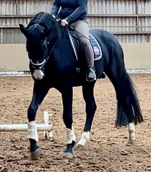 Sehr hübscher Hengst ! Jeder der ihm begegnet ist gleich begeistert ! Er ist sehr brav und unkompliziert im Umgang, hat täglich selbstverständlich mehrstündigen Weidegang und geht alleine oder auch mit Stuten in der Gruppe ins Gelände. Wachstumsbedingt wurde er erst spät und schonend angeritten. Er ist sehr leichtrittig und schön zu sitzen. Sehr schwungvolle Trabtour mit Knieaktion, Galopp schön bergauf angelegt, immer kraftvoll und gut unter den Schwerpunkt fussend. Sein Schritt ist geregelt mit gutem Übertritt. Alles in allem ist er ein Charmeur, der den Eindruck macht als würde er gleich beim Einreiten gewinnen ! Er wurde noch nicht öffentlich vorgestellt und soll seine erste Dressurpferde M im Frühjahr gehen. Im Training mit 10 Pferden auf Aussenplatz und Halle ist er sehr lieb aber immer mit viel Ausdruck unterwegs. Ein Hingucker, so wie man ihn sich wünscht ! Aussengalopp sicher, Wechsel wie selbstverständlich . Seitengänge problemlos sowie Arbeitspirouetten spielerisch.. Er springt auch einen A Parcours mit viel Freude. Ich habe ihn robust gross gezogen. Er verbrachte bis ende 3 Jährig seine Jugend auf der Nordseeweide in der Herde und wünsche mir ein liebevolles und förderndes Zuhause mit Anspruch Richtung GP. Er reagiert entsprechend auf die gewünschte Anforderung und bleibt dabei gelassen und cool. Preisvorstellung derzeit um 💯 und steigt mit seinem Ausbildungsstand. Aufzüchterröngenreihe mit Hals & Rücken liegt vor. . . . . . . . . .