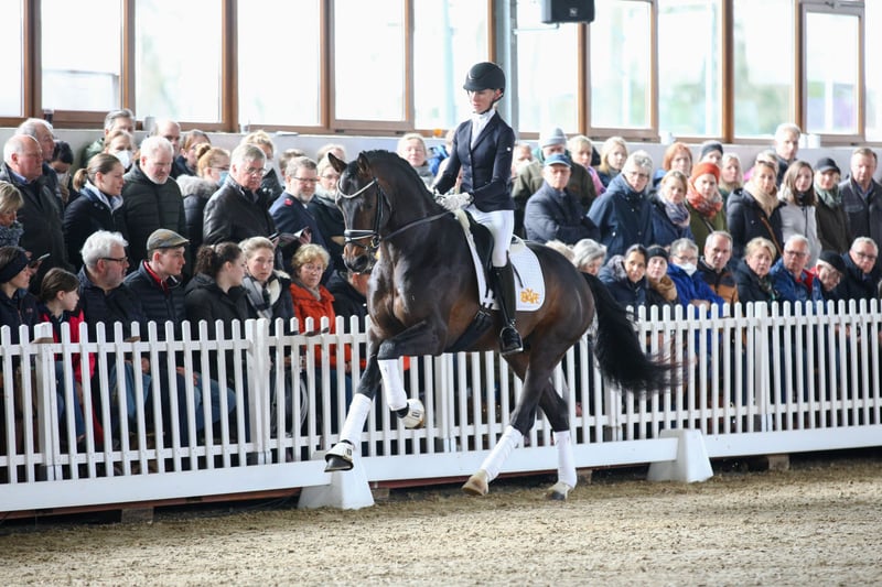 Nuestra Strahlemann Endorphin nació con nosotros en Hemmoor y desciende de Escolar-Don Nobless-Münchhausen-Werther. En términos de encanto, brillantez tipográfica y modernidad, Endorphin una vez más se destaca claramente de muchos representantes de su dinastía paterna actualmente tan exitosa. Su diligente y extremadamente ágil técnica de derecha y cuartos traseros al trote y al galope, así como su forma de caminar, que puede considerarse particularmente buena, atrajeron mucha atención durante sus apariciones con motivo de la licencia en Verden. Su naturaleza alerta pero bien cuidada, así como su sensibilidad positiva y su alegría por el trabajo también forman la base de un futuro caballo de élite en lo que respecta a su interior. El padre Escolar está en el equipo A alemán bajo las órdenes de su jinete Hubertus Schmidt. Como padre, produjo dos ganadores de medallas en el Campeonato Mundial de Caballos Jóvenes de Doma Clásica de 2021 en Verden. En lo que respecta a la temporada de licencias de 2021, pudo dejar una huella especial con sus hijos y nietos. Con el padre de la madre, Don Nobless, el próximo semental de la Copa de Naciones sigue en el pedigrí, que también se describe con más detalle en estas páginas y sin duda será conocido por nuestros criadores. Rousseau, que le siguió, también estaba destinado con nosotros en Hemmoor. En la cría de caballos holandeses, lleva el título de "Preferent", que rara vez se concede y atestigua la más alta calidad de la herencia. A través de sus hijos y nietos, ejerce una influencia mundial en la cría de caballos de doma clásica y es probablemente el hijo más influyente de su gran padre, el semental olímpico Ferro. También en el lado de la yegua más importante, la familia de Endorphin es sinónimo de una calidad excepcional. Aquí hay cuatro madres de sementales en sucesión directa. Su hermosa madre Donna Musica, al igual que su media hermana Que Belle, fue la ganadora del espectáculo en el Dobrock. Ambas yeguas están equipadas con pruebas de 8.5wer y representaron los colores de nuestro establo en la exposición de von der Decken. La abuela Feine Melodie y también la bisabuela Melodie nos trajeron varios sementales con licencia y varios caballos de Gran Premio, algunos de ellos con éxito internacional. La siguiente yegua Werther Wakonda es una de las yeguas de cría de nuestra granja. Con los sementales con licencia Regazzoni y Donnerwerther, produjo un subcampeón alemán y un campeón federal inglés. Creemos firmemente que son estas líneas continuas de yeguas las que forman la base de una buena herencia de un semental. Criar significa pensar en términos de generaciones. Su familia le dio a Endorphin todas las herramientas para hacer una carrera en el deporte y la cría.