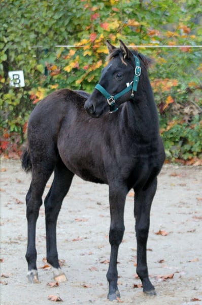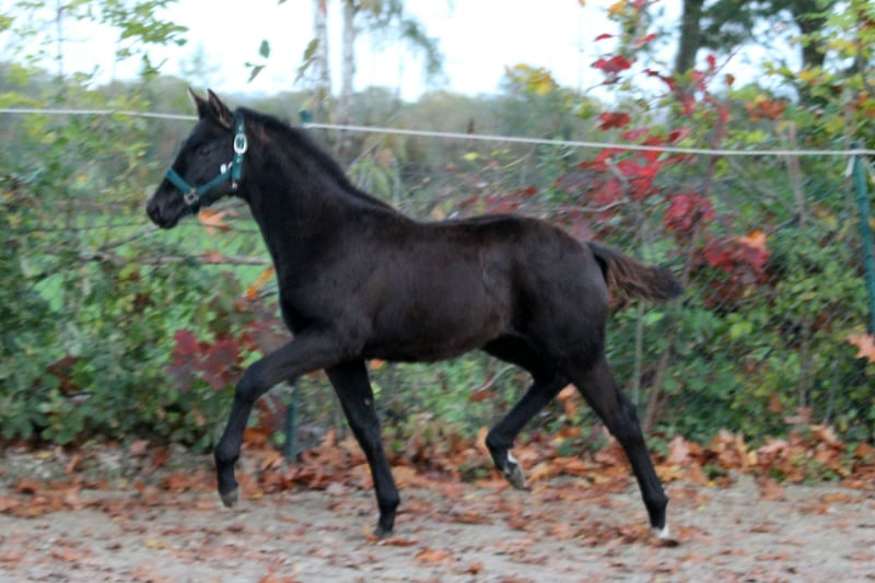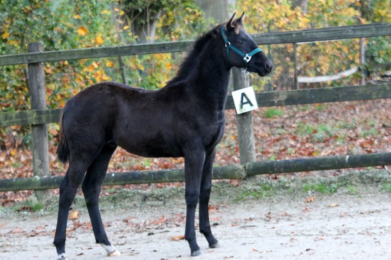 Potro de semental negro azabache en el estilo de su padre Glamdale. Con un gran tipo, un ojo muy bonito y mucha presencia. El padre Glamdale fue, entre otros, un aclamado subcampeón mundial de caballos de doma de cinco años en Ermelo. Con rondas armoniosas, la pareja Glamdale WP NRW y su jinete Steffi Ahlert conquistaron no solo los corazones del público. Los jueces otorgaron notas de ensueño y el mundo celebró una nueva pareja de ensueño en la pista de doma. El padre de Glamdale, Glamourdale, fue nombrado por tercera vez "Caballo de Doma del Año KWPN" y es, bajo la tutela de su entrenadora Charlotte Fry (GBR), ganador de medalla de bronce olímpica en París con el equipo británico y en el programa libre. Recientemente, ambos brillaron con dos victorias (89,84%) en la etapa de la Copa del Mundo en Ámsterdam. La madre de Glamdale, Martinadale P, es la hermana directa de Maracana del Milenio. Maracana, semental premiado de la aprobación de Westfalia, ha llegado ahora a la clase alta. El padre de la madre, Millenium, es uno de los Trakehner más significativos de la cría actual. Con numerosos sementales ganadores y premiados, hijos exitosos en el deporte y 70 hijos aprobados, forma parte del Who's Who de la cría moderna de rendimiento. En la línea materna de este potro negro, siguen dos importantes sementales de la cría de caballos de doma de Hannover: Brentano II y Weltmeyer. Ambos estuvieron durante toda su vida en la estación de cría de Celle y produjeron una serie de caballos de doma internacionalmente exitosos. El potro en sí impresiona con su sustancia seca y correcta. Con un carácter impecable y una actitud amigable hacia los humanos, no hay nada que impida una futura carrera como caballo de deporte exitoso. Video disponible a pedido. Por encargo del criador. Se puede ofrecer un lugar de crianza.