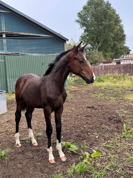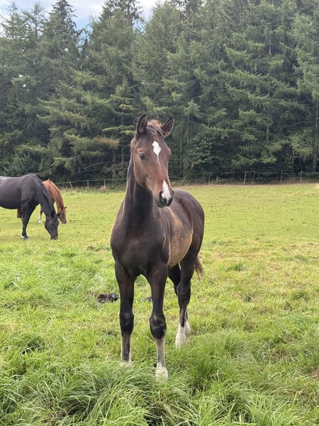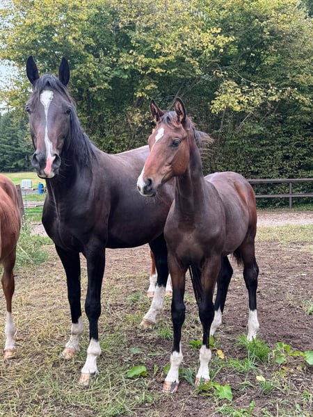 Debido a la no aceptación por parte de un comprador poco fiable, nuestro joven semental se ofrece nuevamente como potro para la venta por motivos de necesidad. Viva Coeur impresiona por su buen movimiento, elástico y armonioso, y por su presencia elegante y distintiva. Es de color castaño oscuro con cuatro patas blancas y se muestra despierto, sociable y cercano a las personas. Actualmente en muda de pelaje, se adjunta un video reciente en la pista cubierta. También hay grabaciones adicionales de hace entre 3 y 5 meses. Se dispone de un informe veterinario actualizado; el potro está sano y en buenas condiciones. Además del padre, Viva Romance PS, proveniente de una de las líneas de yeguas de doma más exitosas, la línea materna también es muy interesante. Entre sus ancestros se encuentra, entre otros, el hermano completo de la madre y una media hermana que ha obtenido placings en S. También hay otros hermanos de éxito de la madre, como Coeur de Lis (inscrita en el Studbook principal de Hannover).