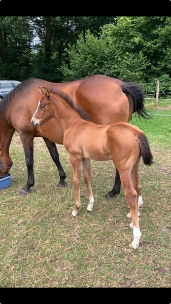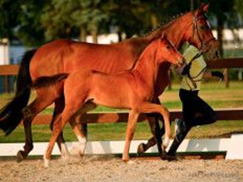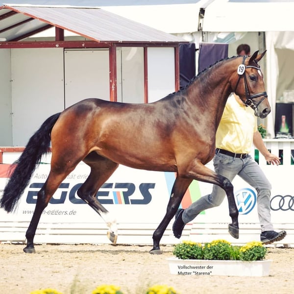 Dieses hochmoderne Hengstfohlen ist von Typ und Bewegung besonders interressant. Er hat die besondere Ausstrahlung seines Vaters geerbt. Vitero bewegt sich leichtfüßig mit aktiver Hinterhand und guter Knieaktion. Der edle Kopf, das blutgeprägte Exterieur, das sehr korrekte Fundament und die Langbeinigkeit stechen besonders hervor. Seine Körperpartien sind wie gewünscht: über viel Boden stehend, weit in den Rücken reichernder Widerrist, ausreichend lange Mittelhand die den Rücken gut schwingen und das Pferd sich leichter biegen läßt. Die Mutter hat zuvor bereits vier Fohlen für die Verdener Fohlenauktionen gestellt. Alle Fohlen waren aus dressurbetonten Hengsten gezogen. Eine Tochter davon, die auf der Auktion für 20T Euro zugeschlagen wurde, hat im Vielseitigkeitssport zahlreiche Gelände- und Dressurprüfungen der Klassen A - M gewonnen. Unter Julia Krajewski hat sie auch 6jährig die Bronzemedaille beim Bundeschampionat eingeheimst. Der Vollbruder (Radero) ging über die Verdener Auktion in einen Dressurstall nach Dänemark. Eine Tochter von Raven wurde 3 jährig mit dem 1a Preis und als Prämienanwärterin ausgezeichnet. Die ebenfalls von mir gezogene Vollschwester der Mutter namens "Starena" hat dreijährig die beste Leistungsprüfung ihres Jahrgangs im Bereich Springen abgelegt. Dabei erhielt sie u.a. eine 9,5 für die Rittigkeit und zweimal die Wertnote 10 für das Springen. Außerdem stand sie den Dressurstuten in Typ und Bewegung kaum nach. Sie gewann das deutsche Elitenstutenchampionat in Lienen und die bedeutendste Sutenschau Hannovers, die Herwart von der Decken Schau als Gesamtsiegerin. Für das hier angebotene Fohlen darf also von einer sehr guten Rittigkeit sowohl von Mutter- als auch von Vaterseite ausgegangen werden, da auch der Vater Viva Romance in seinen Prüfungen hohe Rittigkeitsnoten erzielte. Dass der Mutterstamm von diesem Hengst bereits 10 gekörte Hengste hervorbrachte spricht für sich. Außerdem ist die hervorragende Gesundheit dieses Stammes und die Härte des Springblutes, das zudem Stärke im Rücken und einen guten Galopp vermittelt, m.E. ein wesentlicher Faktor für die Kaufentscheidung. Die Anpaarung verringert zudem die Wahrscheinlichkeit der Degeneration von Hals- und Brustwirbeln wie sie vermehrt bei reinen Dressuranpaarungen durch die Inzucht über viele Generationen hinweg auftrit. Das Fohlen kann natürlich jederzeit und völlig unverbindlich auf der Weide in Augenschein genommen werden. Sein hervorragender Typ zeigt sich dem Betrachter dann noch wesentlich deutlicher als auf Bildern. Videolink https://youtu.be/ok6kH9JtG4M