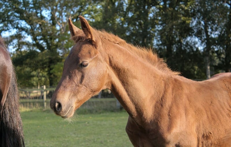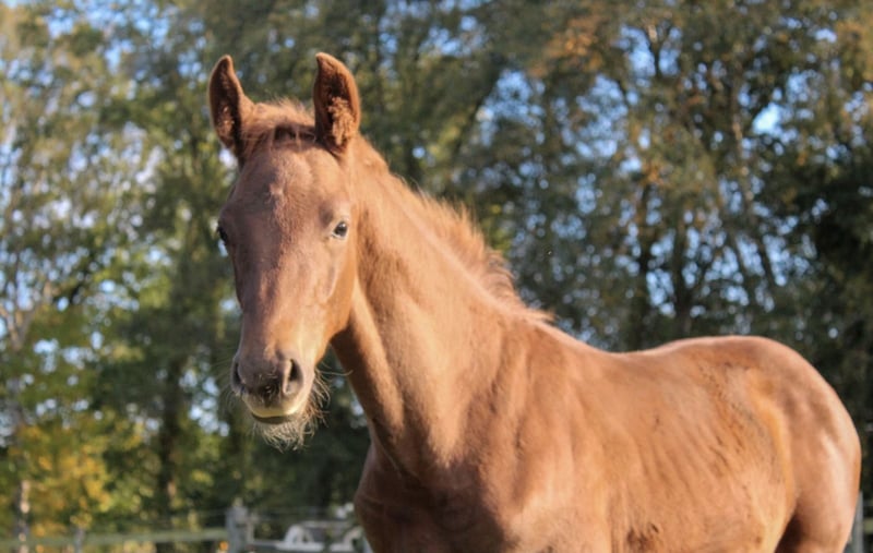 For sale is the promising Hanoverian stallion Keep Cool vom Leisch, born on June 15, 2025. This elegant chestnut impresses with his modern silhouette, energetic movement mechanics, and a balanced character. His sire, Kjento (Negro x Jazz), is among the most sought-after stallions in the dressage scene today. As the winner of the KWPN stallion performance test and world champion of young dressage horses, he impresses with top-class movement potential, rideability, and charisma – traits that he reliably passes on to his offspring. His dam, Donna (Dagostini x Rotspon), brings not only athletic performance but also breeding excellence: She is a premium mare with a successfully completed SLP and has already produced auction foals. Her offspring consistently impress – including champion and reserve champion foals, as well as gold premium descendants at foal shows. Donna herself excels in rideability, has a balanced temperament, and is the epitome of a modern, sport-oriented breeding mare. Keep Cool vom Leisch combines the best from two proven lines and possesses all the qualities for a future in dressage or high-quality breeding. Keep Cool is raised in a herd environment, is well-socialized, curious, people-oriented, and halter-trained for his age. He is microchipped, regularly dewormed, and will be registered with the Hanoverian Association. Current videos are available and can be sent upon request. Feel free to visit us to meet Keep Cool in person.