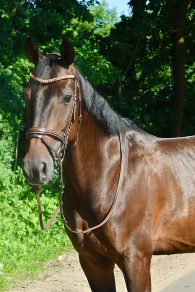 Na sprzedaż jest piękny wałach hanowerski, urodzony w 2016 roku. Z imponującym wzrostem 169 cm i eleganckim ciemnobrązowym futrem przyciąga wszystkie spojrzenia. Ten utalentowany wałach wykazuje duży potencjał w skokach i nadaje się zarówno dla ambitnych jeźdźców rekreacyjnych, jak i sportowych. Szczególnie godne uwagi: jest to absolutne "dziecięce" konie, bardzo grzeczny w skokach, co czyni go idealnym dla młodszych jeźdźców. Jest dobrze wykształcony, grzeczny w obcowaniu i ma nienaganną osobowość. Uwielbia pracę i zawsze pokazuje się jako zmotywowany i chętny do nauki. Zarówno na ujeżdżalni, jak i w terenie, jest niezawodnym partnerem, który zachwyci zarówno początkujących, jak i doświadczonych jeźdźców. ➡️ Ważna informacja: Na początku 2025 roku przeszedł operację na więzadle pęcinowym. Leczenie zostało całkowicie zakończone, jest całkowicie wyleczony i znowu gotowy do pracy. Jeśli szukasz wszechstronnego i utalentowanego konia, który zapewni Ci wiele przyjemnych chwil w siodle, skontaktuj się z nami po więcej informacji lub umówienie się na oglądanie. Czekamy na Twoje zapytanie!