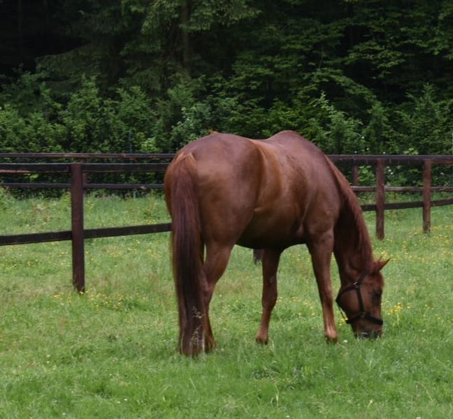 Nous vendons notre magnifique hongre Hannoverien. Il a été dressé en dressage et mesure 1,72 m. Nous le travaillons depuis qu'il a 4 ans, avec douceur, intelligence et sans précipitation. Il est très proche des humains et préfère avoir sa personne attitrée. Il se monte très bien et souhaite toujours faire les choses correctement. En dressage L (jusqu'à L**), il est très bien placé, et il évolue actuellement à un niveau M. En extérieur ou en concours, il est parfaitement calme. Il peut être chargé seul et partir en toute autonomie, ce qui vous rend indépendant et ne nécessite pas toujours la présence d'une autre personne. Malheureusement, il présente des anomalies radiologiques fortuites, c’est pourquoi nous ne le voyons pas principalement dans le haut niveau de dressage, mais plutôt dans le cadre amateur ou de loisirs exigeants. Il est en pleine préparation, aime travailler et être sollicité. Nous prions de ne pas contacter de marchands ou d’amateurs débutants. Ce cheval nous tient beaucoup à cœur et est vendu uniquement en raison de sa progéniture existante et à une personne expérimentée, afin de lui garantir des conditions optimales et professionnelles à l’avenir. Ce n’est pas un cheval pour un paddock libre et il ne peut pas vivre sur des pâturages mixtes. Pour plus d’informations, ainsi que des photos et vidéos, veuillez nous contacter uniquement par téléphone au 0151/27537601.