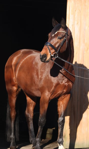 Finn is a performance-oriented dressage gelding with a wonderful temperament. With his excellent basic gaits and his consistently motivated attitude, he is well-equipped for higher-level tasks. A valid TüV is available.