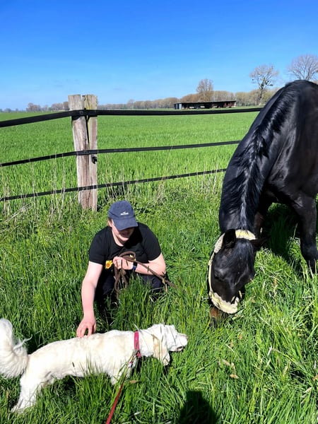 Wir bieten hier den 10 jährigen imposanten Fred an. Fred ist mit seinen 175 cm und seinem Muskulösen Körper ein recht kräftiges Pferd. Fred verfügt über viel Grundschwung, bei seiner Ausbilderin ist Fred auf Turnier erfolgreich in der Klasse A vorgestellt worden. Bei seiner aktuellen Besitzerin ist Fred überwiegend im Freizeitbereich eingesetzt worden. Dressurlehrgänge, Reiten auf dem Springplatz und viel „Betüdelt“ war in den letzten Jahren Freds Alltag. Zu Fred möchten wir vorab sagen das es kein Anfänger Pferd ist, da er eine Sensible Art hat. Sein Reiter muss über einen sicheren Grundsitz verfügen und in der Lage sein Fred sicher an den Hilfen zu halten. Dies ist auch im Gelände wichtig , der Reiter muss ihm Sicherheit bieten können. Fred wird verkauft da die Besitzerin den Reitsport eingestellt hat. Platz vor Preis.
