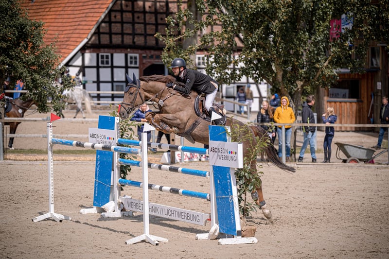 High-quality gelding available due to herd reduction: Shawny is an 11-year-old modern show jumper, distinguished by his exceptional quality, bravery, and willingness to perform. He has a comfortable go and is always controllable; he responds to the smallest aids and is eager to jump. This makes him suitable for ambitious amateurs as well as professional riders. In the show ring, he consistently proves to be a reliable partner with good awareness and caution at the jump. He has the potential and ability for higher classes. Currently, he is placed up to M** (130 cm) and has won multiple classes up to 115 cm. Shawny is a dark chestnut and approximately 1.70 m tall. Pedigree: Stolzenberg (Stakkato) x Chambertin (line of Chacco Blue) He is not suitable for beginners, riding schools, or vaulting. I am not offering him for beginner riders or training purposes. Please refrain from such inquiries. A current X-ray certificate from March 2025 is available (based on two harmless X-ray findings he has had for many years, but he is clinically sound with no issues so far, and this is reflected in the price). A consultation with my veterinarian regarding his health status can be arranged. I do not sell X-ray images, only a top-quality young horse that can win every class from the start. Therefore, I will not send X-ray images without genuine interest in the horse. Anyone seeking a horse with clean X-ray reports without minor findings should be prepared to pay significantly more—up to 50,000 instead of 15,000 euros! Location: Lohne, 49393 He will only be sold to a serious buyer; no distressed sale!
