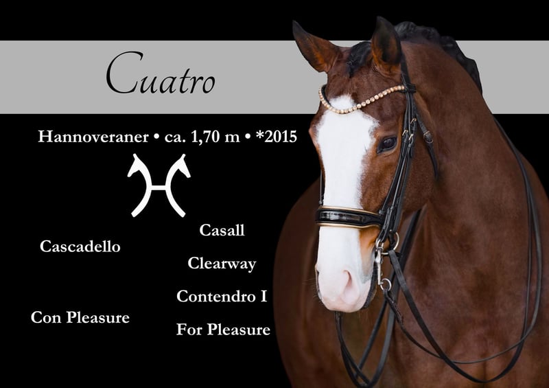 Liebe Interessenten, Für Terminvereinbarungen Probereiten senden Sie mir bitte eine WhatsApp. Für weitere Fragen bin ich tagsüber per WhatsApp erreichbar, telefonisch erreichen Sie mich am Besten zwischen 16 und 19 Uhr. Ich freue mich auf eine Kontaktaufnahme www.angelina-devittorio.de ⭐️Cuatro⭐️ Alter: 11 jahre (2015) Größe: ca 1,71m Abstammung: Cascadello x Contendro Ausbildungsstand: mehrfach S siegreich über 70% AKU: gute Röntgenbilder vorhanden Wunderschöner, auffälliger mehrfach S*-siegreicher Wallach – über 70 % Zum Verkauf steht ein absoluter Ausnahme-Wallach, der keine Wünsche offenlässt. Dieses Traumpferd vereint Qualität, Ausstrahlung und ein Herz aus Gold auf beeindruckende Weise. Mehrfach S*-siegreich mit über 70 %, präsentiert sich dieser Wallach als absoluter Lehrmeister, der alle Lektionen sicher beherrscht. Besonders hervorzuheben ist sein hohes Talent in Piaffe und Passage, die er mit Leichtigkeit und Freude zeigt. Unter dem Sattel ist er sehr angenehm, fein und einfach zu reiten, dabei stets motiviert und leistungsbereit – ein echter Schleifensammler zum Losreiten. Am Turnier überzeugt er durch seine Zuverlässigkeit, Nervenstärke und Klarheit im Kopf. Dank seines braven, ausgeglichenen Wesens kann er problemlos von Kindern und Jugendlichen geritten werden und ist somit auch ideal für die Junioren- und Junge-Reiter-Tour geeignet. Im täglichen Umgang zeigt er sich als absoluter Schatz – lieb, unkompliziert und menschenbezogen. Ein Traumpferd durch und durch, das sowohl sportlich als auch charakterlich begeistert. Der Verkauf erfolgt ausschließlich aufgrund von Bestandsverkleinerung und nur in allerbeste, fördernde Hände. ⚜️ Tel: 0171-3438949 ⚜️ E-Mail: a.devittorio@web.de ⚜️ https://www.ehorses.de/angelinadevittorio ⚜️ Facebook und Instagram: Angelina De Vittorio