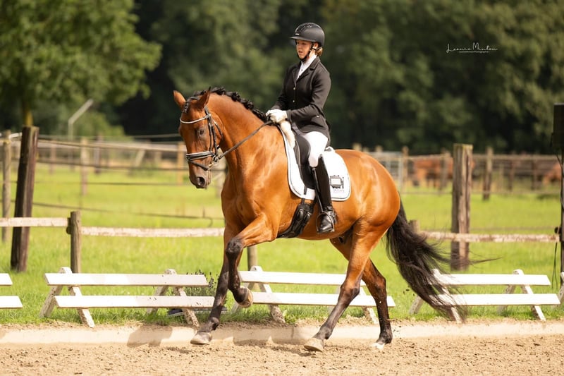 "Bosanova" gehört seit 5 Jahren zu unserer Familie und nun suchen wir auf diesem Weg eine tolle neue Familie für Ihn. Er hat unserer Tochter den Einstieg in den Turniersport ermöglicht und sie konnten viele Siege und Platzierungen in der Klasse A erreichen. Auch in der Klasse L konnten die beiden sich schon platzieren. Er zeigt sich auf dem Turnier sehr zuverlässig, zum Beispiel hat er mit unsere Tochter in Aachen beim "Salut Festival" am Quadrillien Championat teilgenommen. Aufgrund seiner Größe würden wir ihn nicht als reines Einsteigerpferd beschreiben. Jedoch ist er auch für Kinder und Jugendliche gut zu bedienen wenn die Unterstützung von einem Trainer/Bereiter gewährleistet ist. Wir können uns Bosanova als tolles Umsteigerpferd für ambitionierte Jugendliche oder Erwachsene mit etwas Reiterfahrung vorstellen. Er kennt täglichen Weidegang und ist dort verträglich mit anderen Pferden. Im Umgang, also beim putzen, verladen, führen, longieren ist er ebenfalls unkompliziert. Bosanova wurde regelmäßig beim Hufschmied, Zahnarzt und Physiotherapeuten vorgestellt. Selbstverständlich hat er auch alle Impfungen die für den Start auf Turnieren vorgeschrieben sind. Röntgenbilder von Anfang '22 liegen ohne Befund vor. Weitere Videos können gerne nach erster Kontaktaufnahme per WhatsApp oder telefonisch versendet werden. 01575 3574501