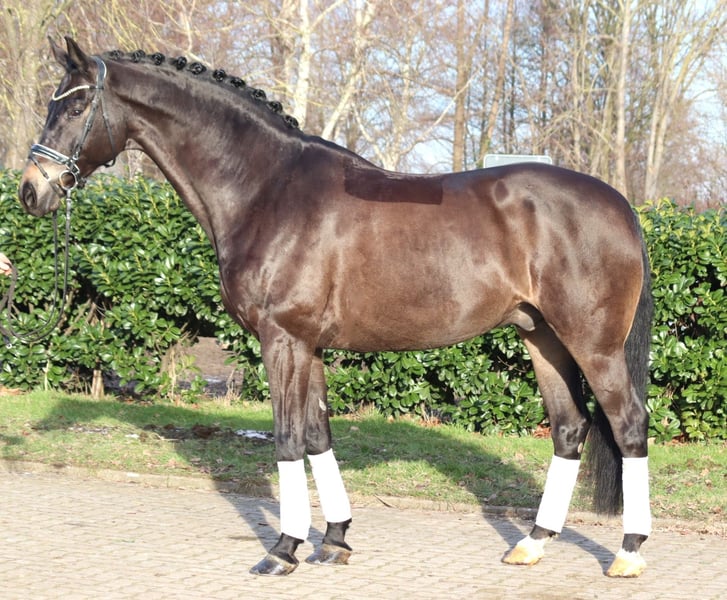 Large-framed 11-year-old gelding by Grey Flanell out of Deniro, with impressive movements. He is capable of performing dressage movements at good M-level. Due to his owner’s lack of time, he has been ridden infrequently in recent years and has not been presented in competition. This is a great opportunity for a rider to acquire a well-trained horse with solid basic qualities at a fair price. His half-brother, the licensed stallion Hotline, has achieved success at Grand Prix level. Price plus VAT. Inquiries only by phone; emails will not be answered.