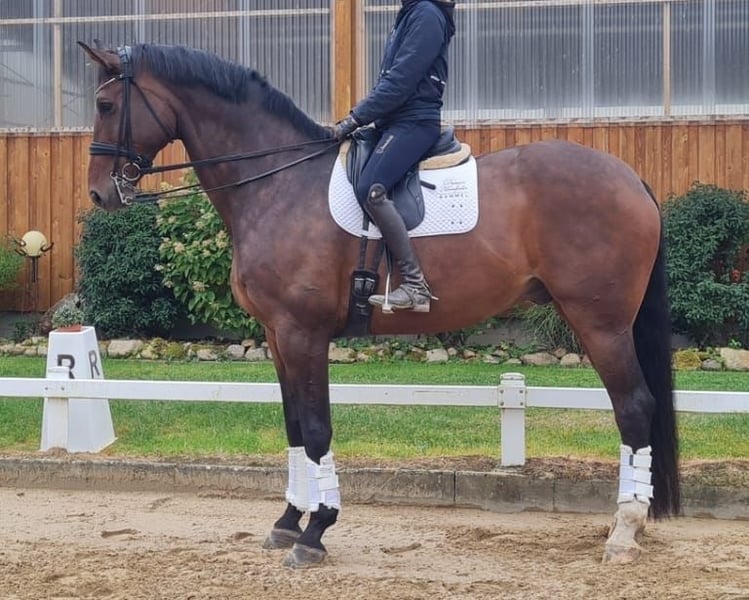 **Sales Advertisement: Hanoverian Gelding** For sale is an impressive Hanoverian gelding, born in 2014. With a height of 189 cm, he is a true eye-catcher and is excellently suited for dressage sports. This brown gelding impresses not only with his size but also with his harmonious movement and balanced temperament. He has proven himself as a reliable partner up to class M in the arena. In handling, he is absolutely uncomplicated, making him a valuable addition for the ambitious beginner as well as for the dedicated competition rider. For the sake of completeness, it should be mentioned that he is shoeing and loading friendly. If you are interested or would like more information, please feel free to contact me. Visit us and see for yourself this wonderful horse!