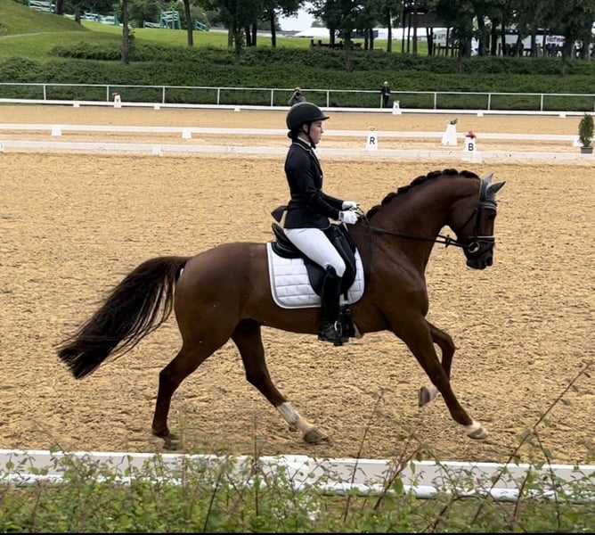 Zum Verkauf steht dieser traumhaft schöne Wallach mit einem liebenswerten Charakter und viel Qualität für den Dressursport. Sowohl am Reitplatz als auch im Gelände ist Livaldi immer mit einem angenehmen GO und Motivation bei der Arbeit. Er reagiert super fein auf die Hilfen des Reiters und möchte stets alles richtig machen. Auf dem Turnier kann Livaldi in der Klasse L und L** schon mehrere Siege und Plazierungen vorweisen. Sobald ihr euch als Team zusammengefunden habt, wird er jede Herausforderung für dich annehmen. Der ideale Partner für den Hobby-Turnierreiter, der sowohl einen tollen Freizeit- als auch Sportpartner sucht. Livaldi ist super einfach und brav im Umgang und hat keinerlei Unarten wie Beißen oder Steigen. Aufgrund seiner Größe und seiner sensiblen Art ist er jedoch nicht für komplette Anfäger geeignet. Verkauft wird er nur in allerbeste Hände und soll ein tolles neues Zuhause finden. Video kann gerne per WhatsApp verschickt werden.