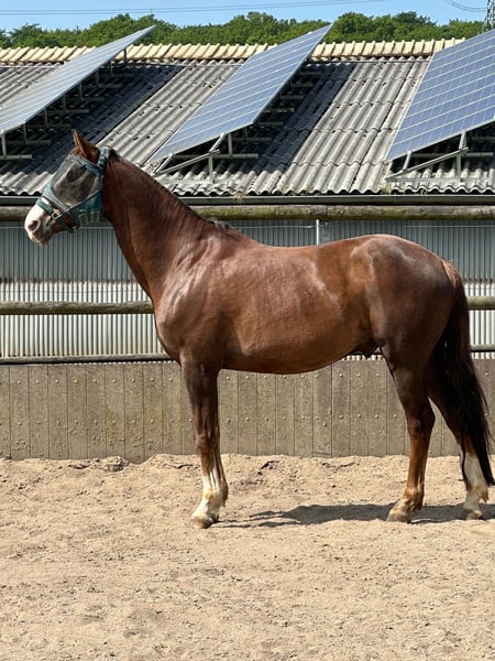 Een passende verkoopadvertentie voor onze ruin Bobo schrijven is voor mij erg lastig, maar ik probeer de situatie zo goed mogelijk weer te geven. Hier enkele gegevens: Bobo is een prachtige donkervos, geboren in 2014. Hij is een afstammeling van Bodyguard en First Smile (een Fidermark-merrie). Zijn stokmaat is 1,74 m. Vanwege een lichte afwijking in de voorbenen wordt hij voor- en achterbeslagen en wordt hij regelmatig door de hoefsmid bekeken. Verder is hij gezond en volledig rijdbaar. Hij is regelmatig ontwormd en gevaccineerd. Dressuurmatig is hij momenteel op niveau A uitgebracht. Hij beschikt over drie zeer mooie gangen en lijkt zeker potentieel voor meer te hebben. Het springen lijkt hem goed te liggen en ook plezier te geven, zoals we hebben kunnen zien tijdens het vrijspringen. Hier is hij echter nog niet verder in begeleid. Wat het lastiger maakt: Bobo woont sinds een jaar bij ons. Wij (een moeder-dochter duo) hebben hem als ons eerste eigen paard gekocht. We zijn allebei geen beginners, maar rijden op verschillende niveaus, waardoor hij als een rustig recreatiepaard ook door minder ervaren ruiters moet te hanteren zijn. Dit werd ons bij aankoop, samen met enkele andere punten, verzekerd. Het proefrijden ter plekke verliep ook zonder problemen. Thuis moesten we helaas snel constateren dat dit echter niet de normale situatie is. Zoals hierboven vermeld, is hij dressuurmatig op niveau A uitgebracht. Maar omdat hij onzeker is, heeft hij een zeer ervaren en betrouwbare ruiter nodig die goed kan inschatten wanneer hij een situatie te “eng” vindt. Als je de signalen niet tijdig herkent, kan hij zich onzeker uiten door te schrikken. Stappen en buckelen zijn hem echter vreemd. Over het algemeen is vast te stellen dat Bobo een vrij gevoelig zenuwstelsel heeft. Hij raakt snel van zijn stuk en heeft in dergelijke situaties een consequente en ervaren hand nodig die hem rust en vertrouwen geeft. Deze situatie lukt ons ruiters niet en kunnen wij hem niet verder helpen. Hij is heel mensgericht en vriendelijk. Hij wil nooit iemand kwaad doen en geniet erg van aandacht. Met andere paarden kan hij goed omgaan, of het nu merries of hengsten zijn. In de kudde staat hij meestal onderaan. Het liefst heeft hij echter dat zijn soortgenoten in zicht zijn. Eigenlijk wilden wij de koop ontbinden en hebben daarom bijna een jaar een langdurige rechtszaak gevoerd. Er ligt nu een uitgebreid gerechtelijk rapport dat, bij echte interesse, ook ingezien kan worden. Dit rapport kwam echter in het voordeel van de verkoper, waardoor wij nu op zoek moeten naar een liefdevol en stabiel thuis voor Bobo, omdat wij hem zeker niet willen houden. De laatste maanden is hij niet gereden, maar uitsluitend vanaf de grond getraind. Fysiek en conditioneel verkeert hij in een staat die proefritten mogelijk maakt. Natuurlijk moet hij weer opnieuw op gang worden gebracht. Hij wordt momenteel weer voorbereid op het rijden onder het zadel door een jonge vrouw. Bobo is oortreu en heeft orale plaques, wat speciale halsters en bits vereist. Proefritten alleen voor gekwalificeerde ruiters en op eigen risico. Bobo is nadrukkelijk geen beginners- of kinderpaard!!! Ondanks alle omstandigheden hebben wij hem in ons hart gesloten, maar we zoeken een liefdevol forever-home, zodat hij niet een wandelend wisselpaard wordt. Meer informatie op aanvraag. Ook in een persoonlijk gesprek of telefonisch. Schriftelijk kun je veel niet zo goed overbrengen. Video’s beschikbaar. Plaats gaat boven prijs!