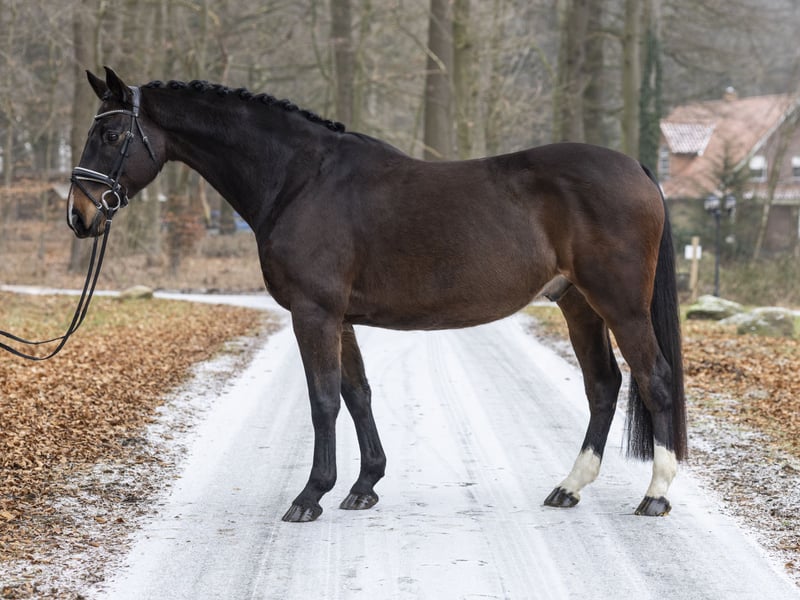 Zum Verkauf steht ein dunkelbrauner 13-jähriger Wallach von Cassini I x Pik Noir mit einem Stockmaß von ca. 165 cm. Er ist im E- und A-Springen platziert und wurde zuletzt verstärkt dressurmäßig gefördert, wo er sich mit viel Motivation, guten Grundgangarten und angenehmer Arbeitseinstellung präsentiert. Im täglichen Umgang zeigt er sich ausgesprochen freundlich, brav und zuverlässig – ein Pferd, das man sofort ins Herz schließt und das einfach Freude macht. Er ist barhuf, schmied- und verladefromm, kennt sowohl Boxen- als auch Weidehaltung und zeigt sich in der Fütterung absolut unkompliziert. Eine Ankaufsuntersuchung kann jederzeit auf Wunsch des Käufers durchgeführt werden. Der Verkauf erfolgt im Auftrag und es wird ein liebevoller Platz gesucht, an dem dieser tolle Wallach weiterhin gefördert wird und einen Menschen findet, der seine ehrliche Art zu schätzen weiß.